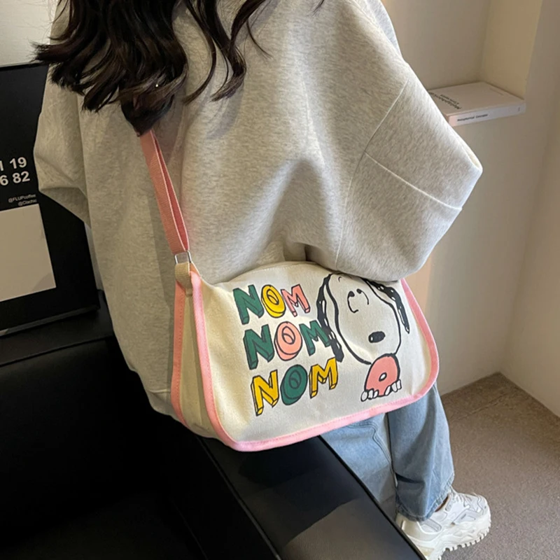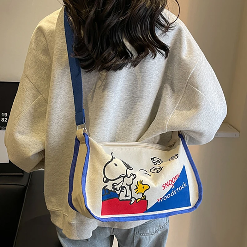 MINISO Snoopy Cartoon Cute Print Canvas Bag Large Capacity One Shoulder Dumpling Bag, Women's Crossbody Bag