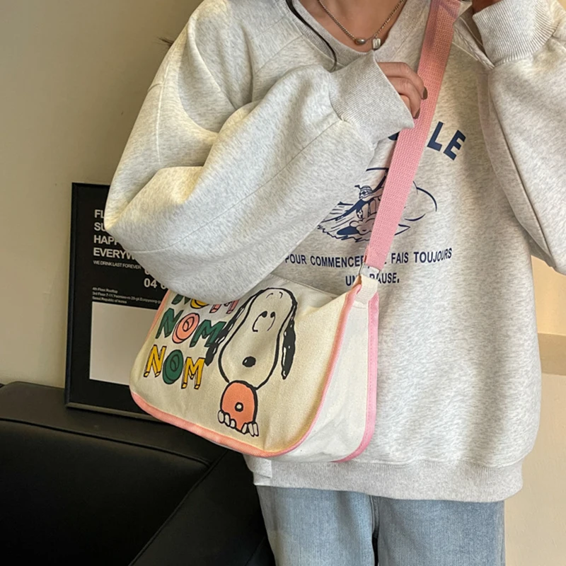 MINISO Snoopy Cartoon Cute Print Canvas Bag Large Capacity One Shoulder Dumpling Bag, Women's Crossbody Bag