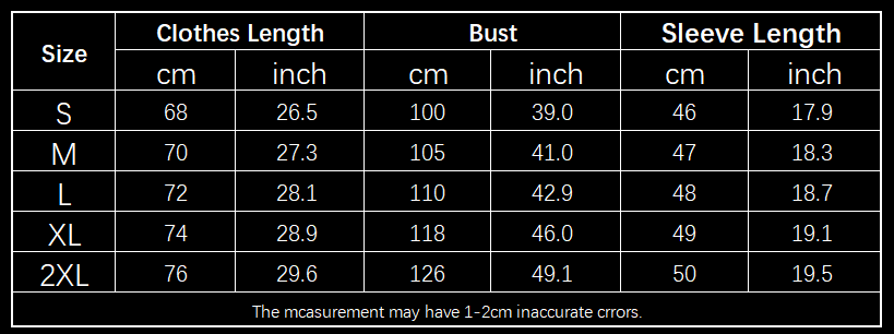 allow 2-3cm differences due to manual measurement.