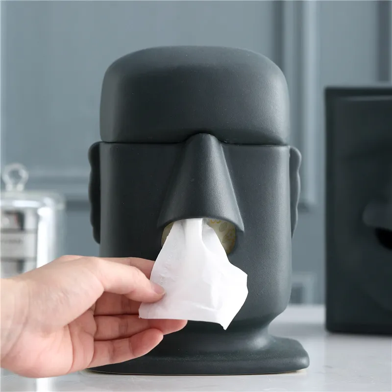 Add a touch of modern art to your space with our Moai Statue Ceramic Drawer Tissue Holder. Inspired by the iconic Moai statues of Easter Island, this tissue holder combines functionality with a bold, artistic design, making it a statement piece for any room. Crafted from high-quality ceramic, this tissue dispenser features a hidden drawer for easy refills, allowing you to store and dispense tissues with ease and style. Perfect for living rooms, bedrooms, offices, or bathrooms, this Moai statue tissue holder brings an artistic vibe and a touch of humor to your decor.