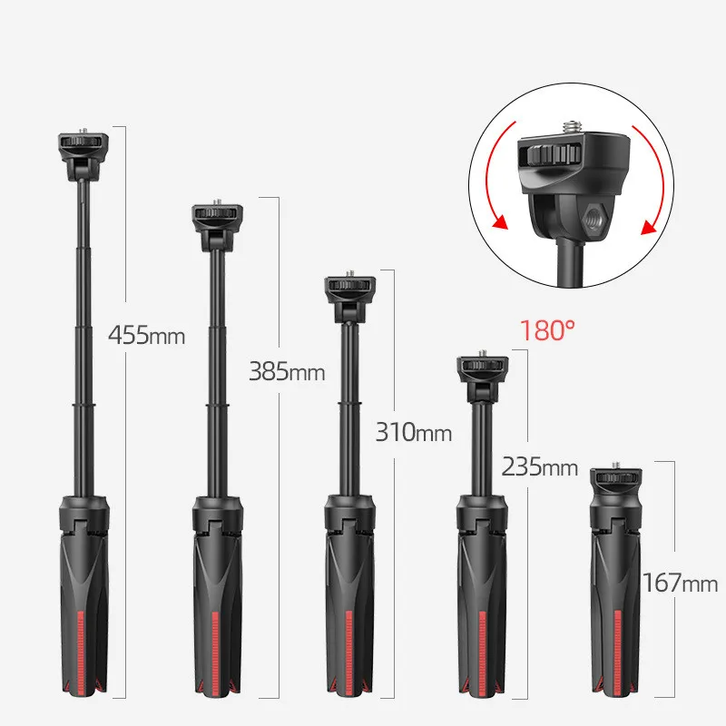 The adjustable height and multi-angle functionality make this device versatile for various photography and video recording needs.