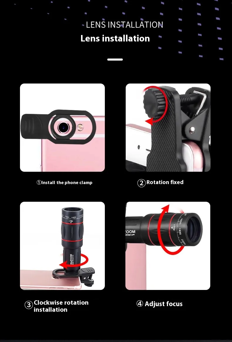 The included lens bracket ensures secure attachment to your phone, preventing slipping or movement during shooting. Adjustable angles and positioning allow you to capture the perfect shot every time, whether for nature, sports, or cityscape photography.
