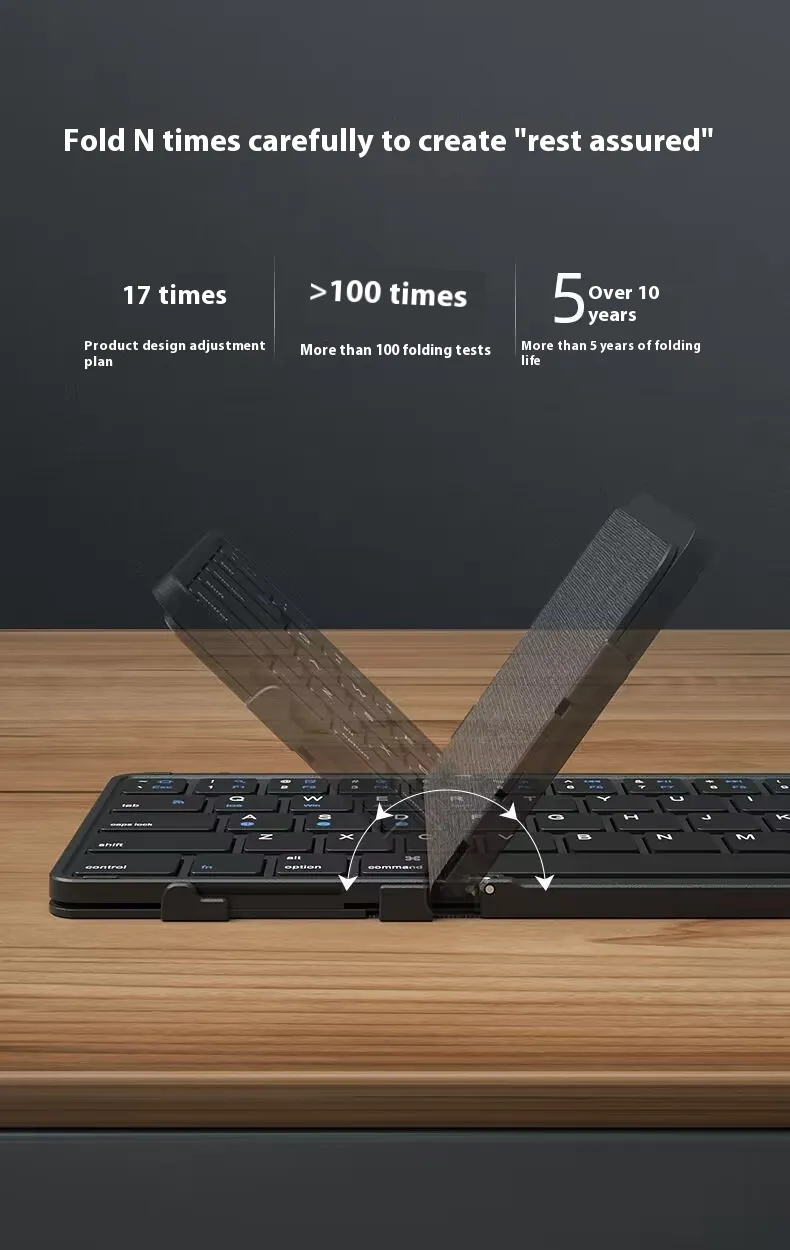 This keyboard is designed with a sleek, foldable structure, making it easy to store in your bag or pocket. When unfolded, it provides a full-size typing experience, perfect for working efficiently on the go.