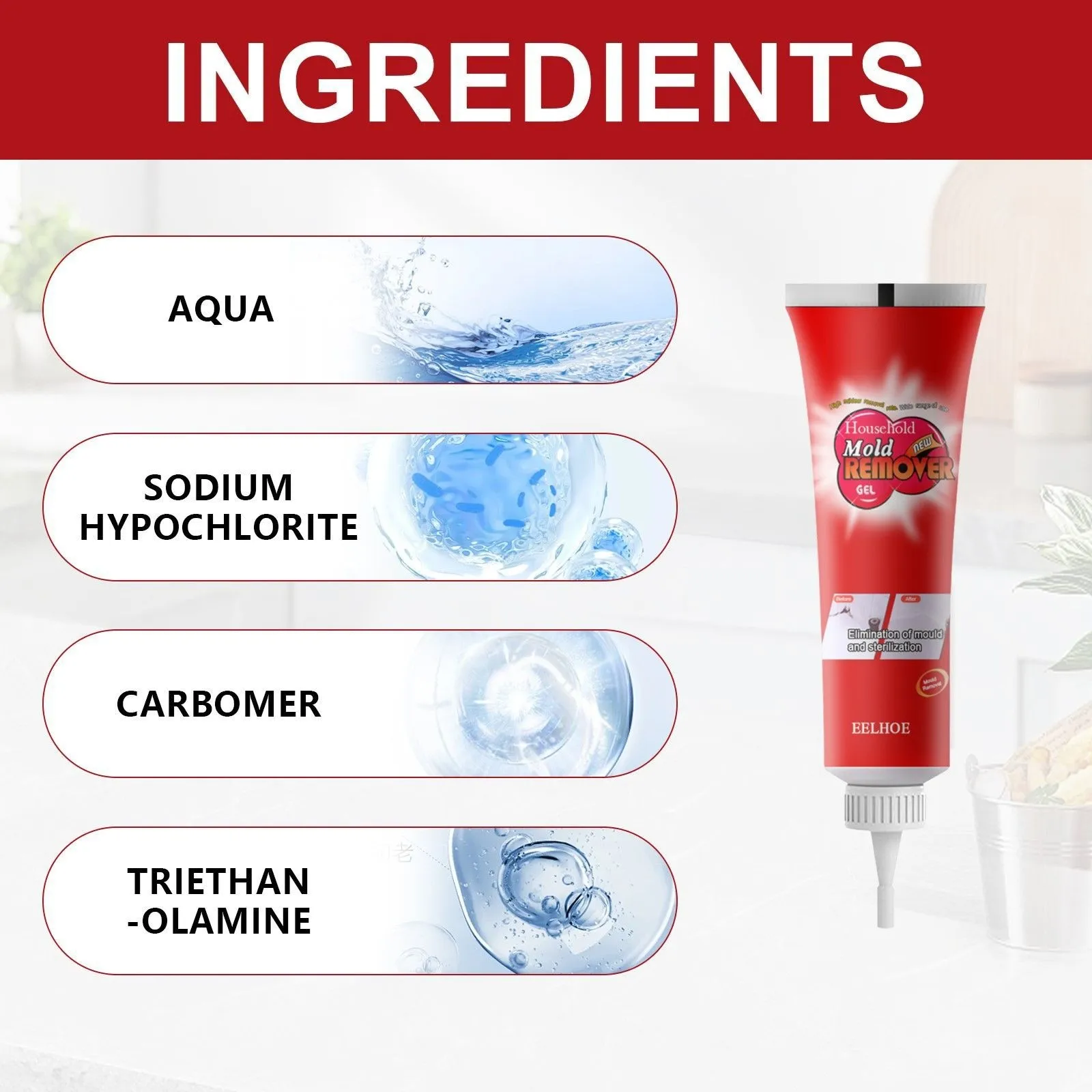 Ingredients: water, sodium hypochlorite, carbomer, triethanolamine