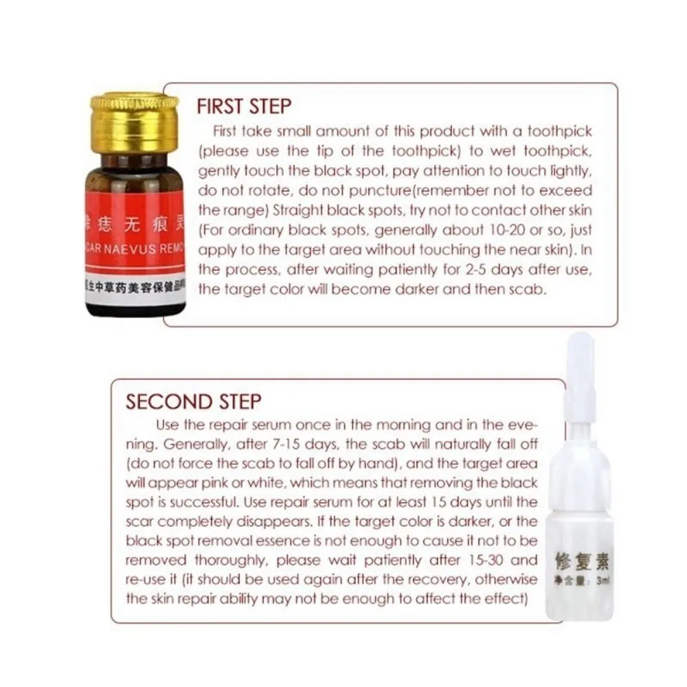 The Mole Removal Kit includes: Mole Removal 3ml + 1 Prosthetic (3ml/piece)