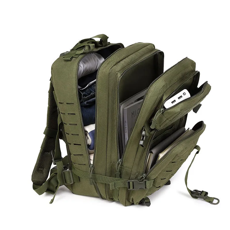 Staying organized is crucial during long outdoor adventures, and the Molle 3 Days Military Hiking Backpack ensures that you can keep your gear neatly packed and easy to find. The backpack features multiple compartments, including: