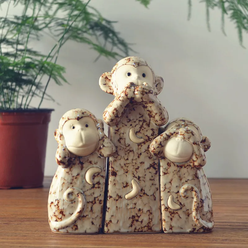 Monkey Decoration Ceramic Three Small Monkey Decorations Living Room Tv Cabinet Home Furnishings Monkey Gift Wedding Gift