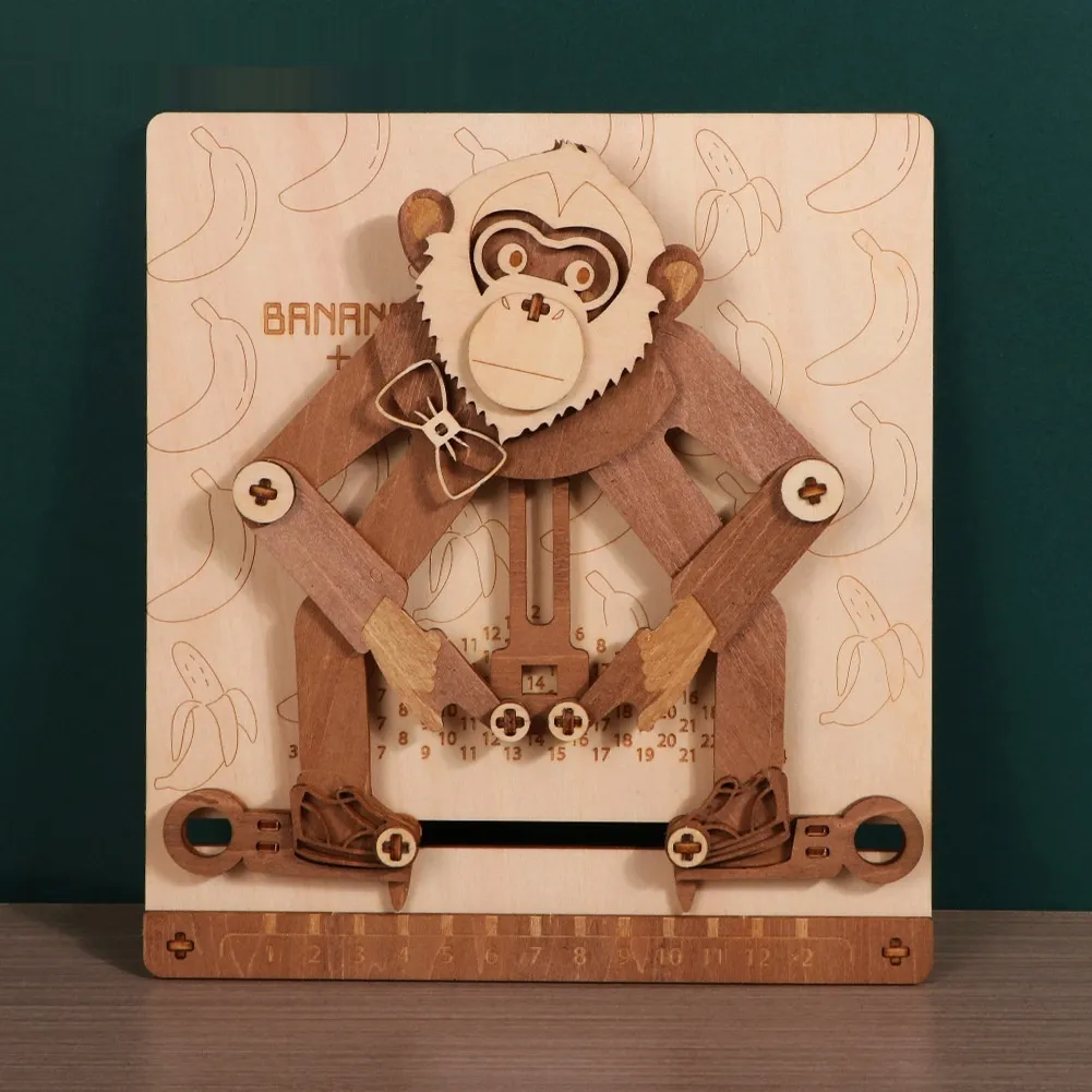 🐵 Monkey Wooden Mechanical Model – Movable Assembled Educational Toy