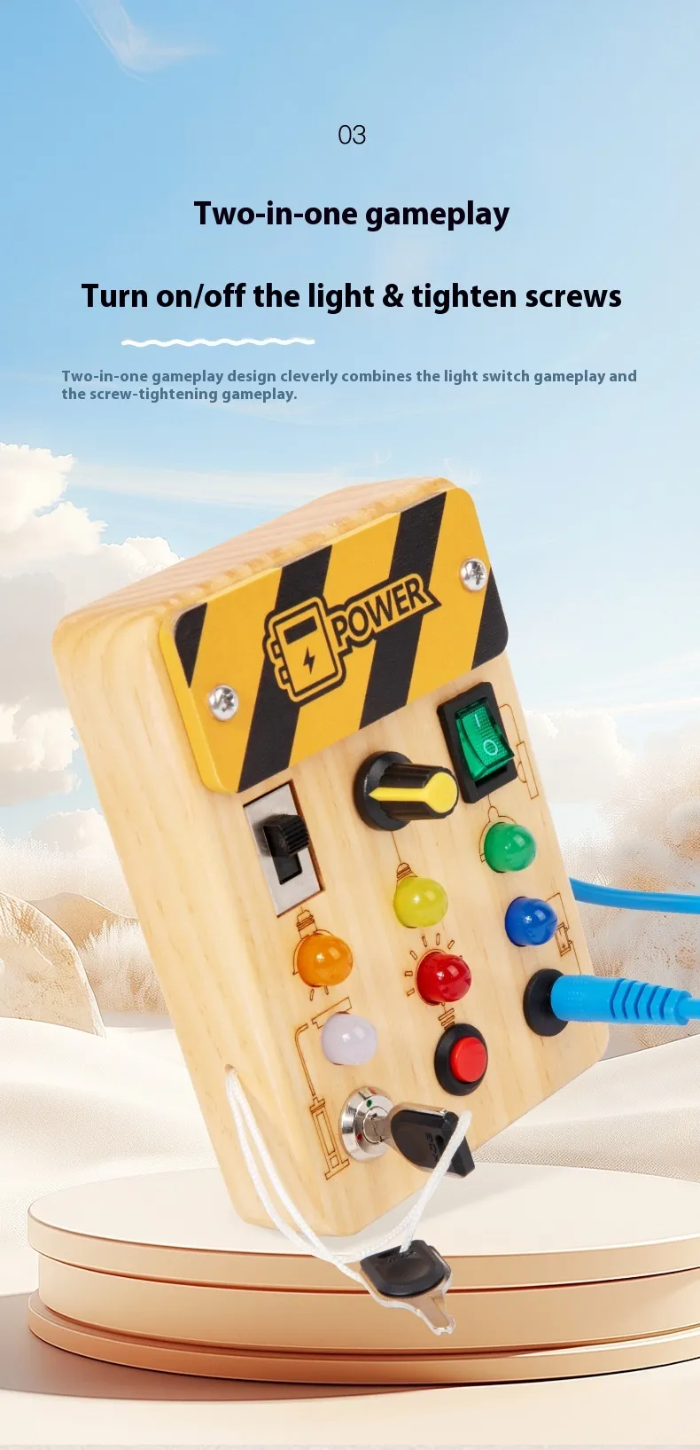 Safe and Durable: Made from high-quality, non-toxic wood, this switchboard is safe for children and built to last, ensuring