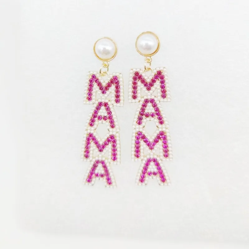 Mother's Day Creative Letters Alloy Ornament Pearl Earrings