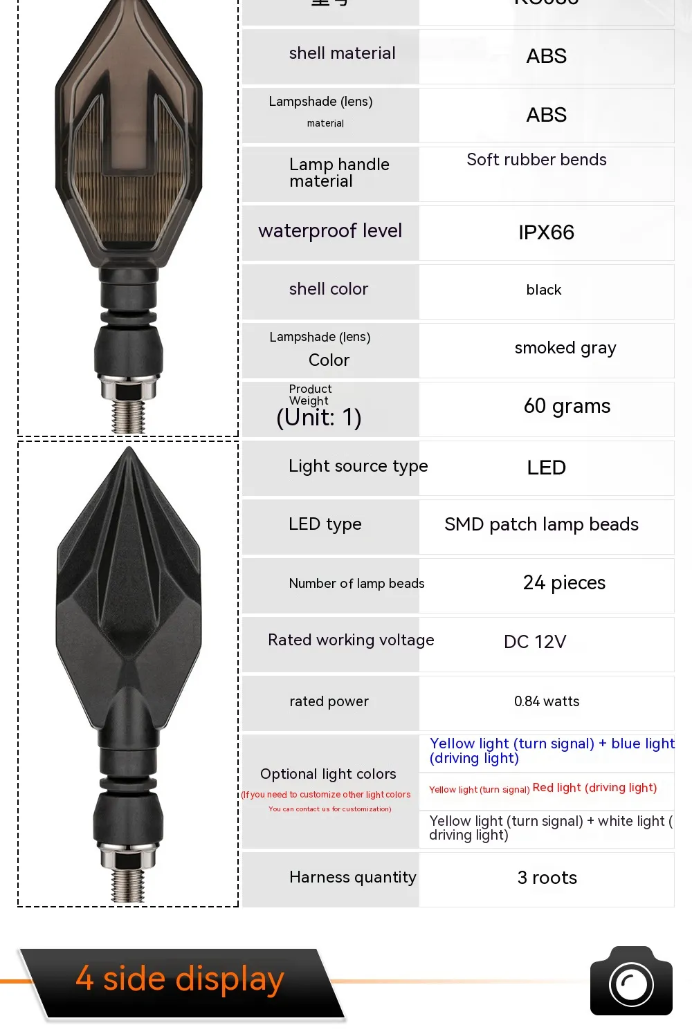 Designed for universal motorcycle compatibility, these LED indicators feature super-bright dual-color illumination—providing white daytime running lights (DRL) and amber turn signals. Whether you're riding during the day or night, these lights enhance visibility and reduce the risk of accidents.