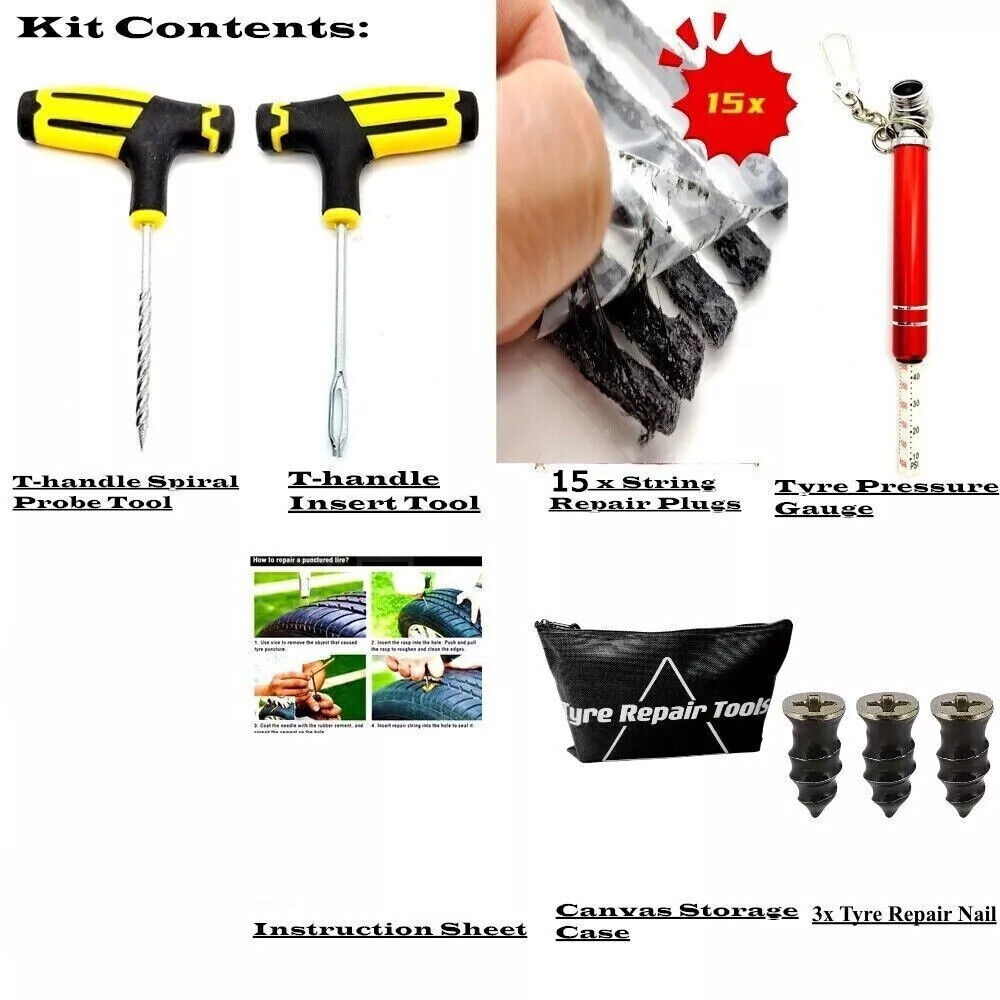 Complete Repair Kit: Includes everything you need to repair a punctured motorcycle tyre, such as tyre plugs, insertion