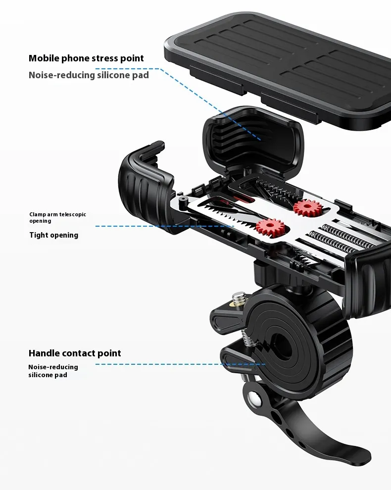 Built with anti-slip clamps and a 360° rotating design, the bracket allows you to adjust your phone for the perfect viewing angle – whether for GPS navigation, tracking fitness, or enjoying music on the go. Its shockproof and durable build guarantees stability during bumpy rides, while the universal compatibility supports most smartphones.