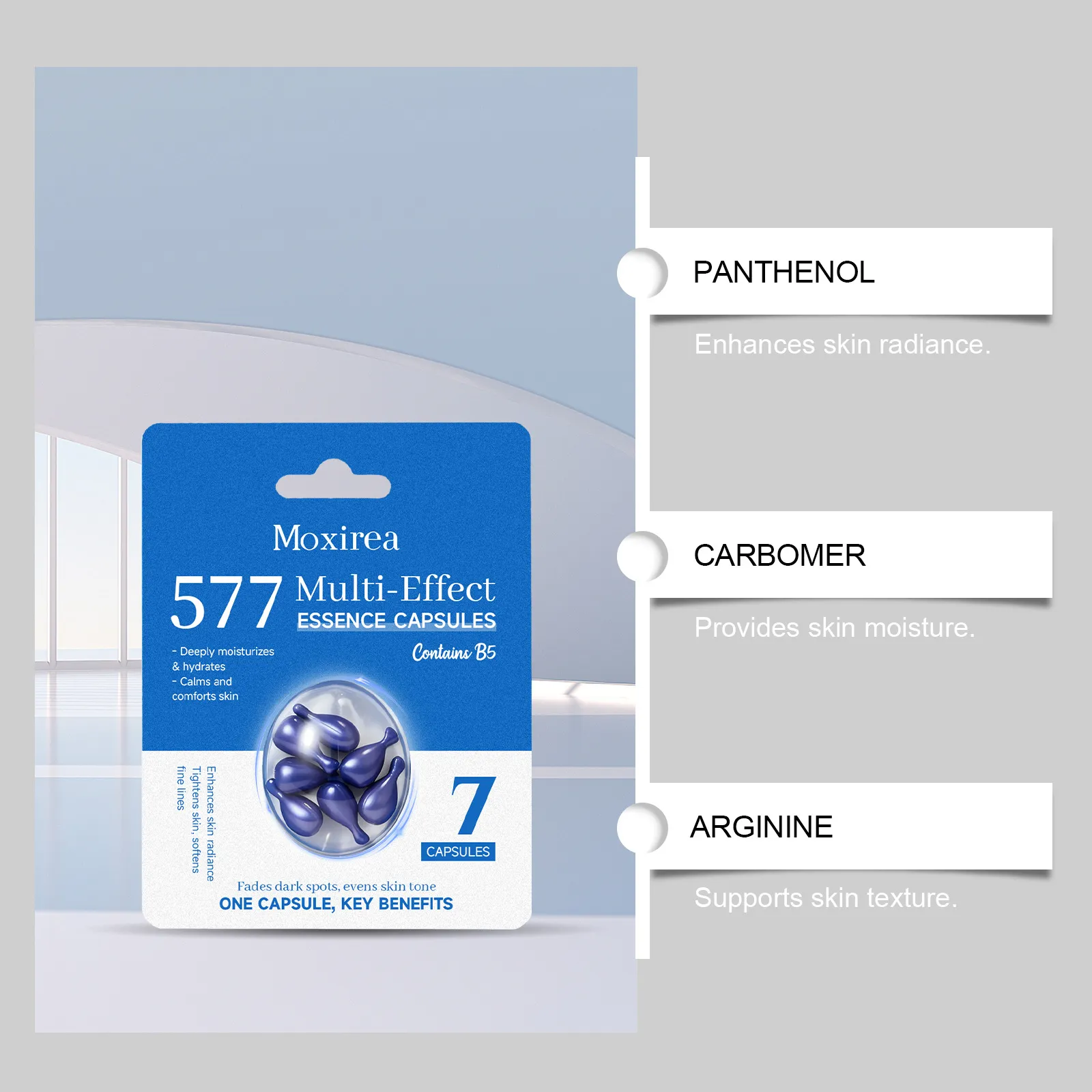 This description highlights the various benefits of Moxirea Multi-Effect Milk Capsules, focusing on its hydration, anti-aging, and skin-rejuvenating properties, while also optimizing for relevant SEO terms. Let me know if you'd like any changes!