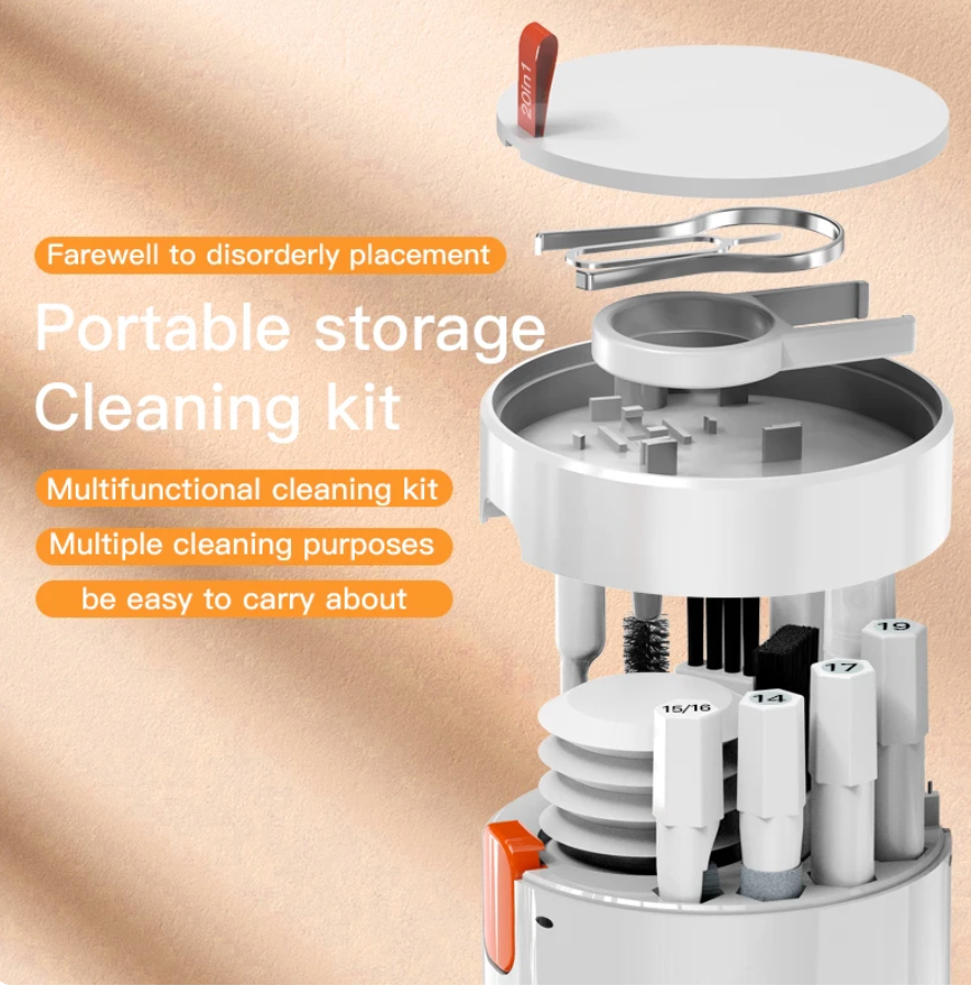 Complete Cleaning Kit: Enjoy a thorough cleaning experience with 20 essential tools, tailored for keyboards, screens, Air Pods, earbuds, and cameras.