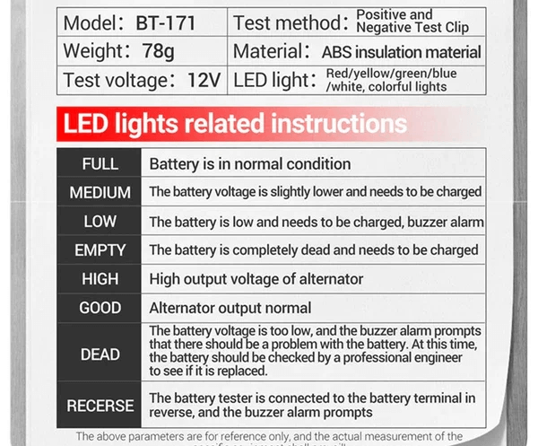 Multi-function car 12V battery tester