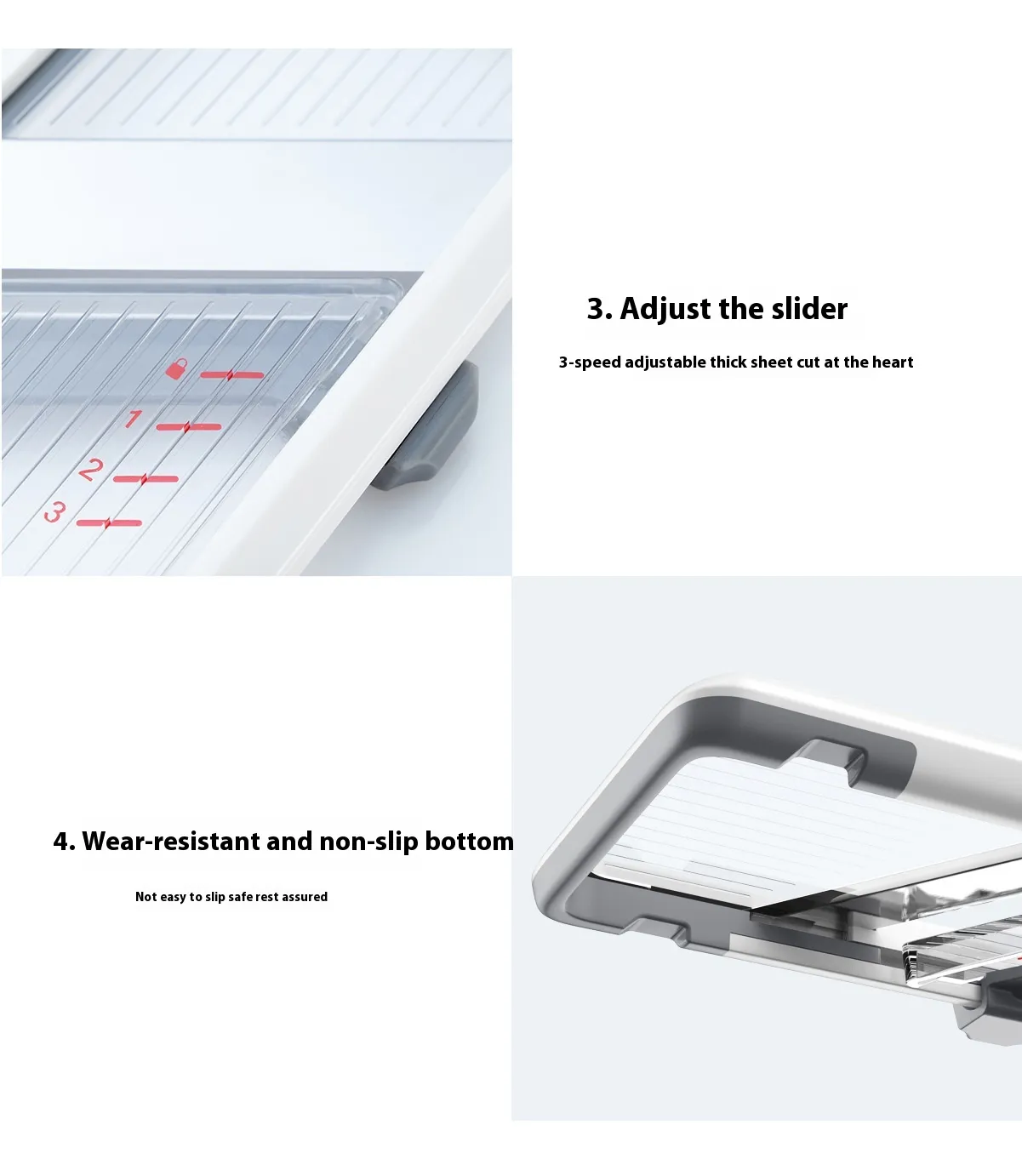 After use, the removable blades and non-stick surfaces make cleaning the slicer a breeze. Simply rinse the slicer under water or place it in the dishwasher for quick maintenance. The durable materials ensure that it can withstand regular use and cleaning without losing its effectiveness.