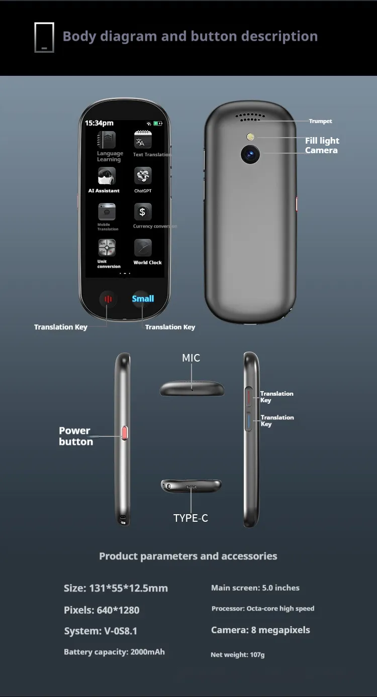 With support for a wide range of languages, this translator is perfect for international business meetings, academic conferences, or even travel, where you need to understand and be understood without barriers. Equipped with cutting-edge AI technology, the translator offers highly accurate translations and can adapt to different dialects and regional variations. Its compact design makes it easy to carry, and its user-friendly interface ensures that it is accessible to both professionals and everyday users.