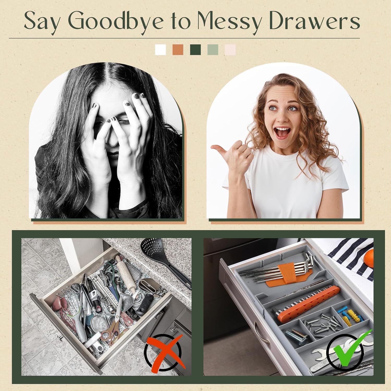 Versatile Storage Organizer: Use as a kitchen drawer organizer for cutlery & silverware, jewelry organizer, or for cosmetics & makeup storage. Makes a great tool organizer or desk drawer organizer for stationery, office supplies & art supplies. A practical organizer for your every need