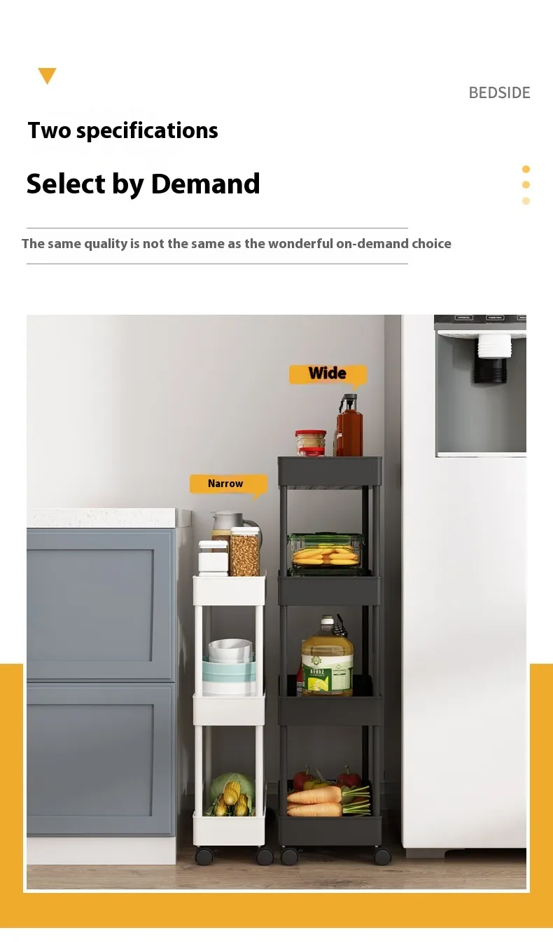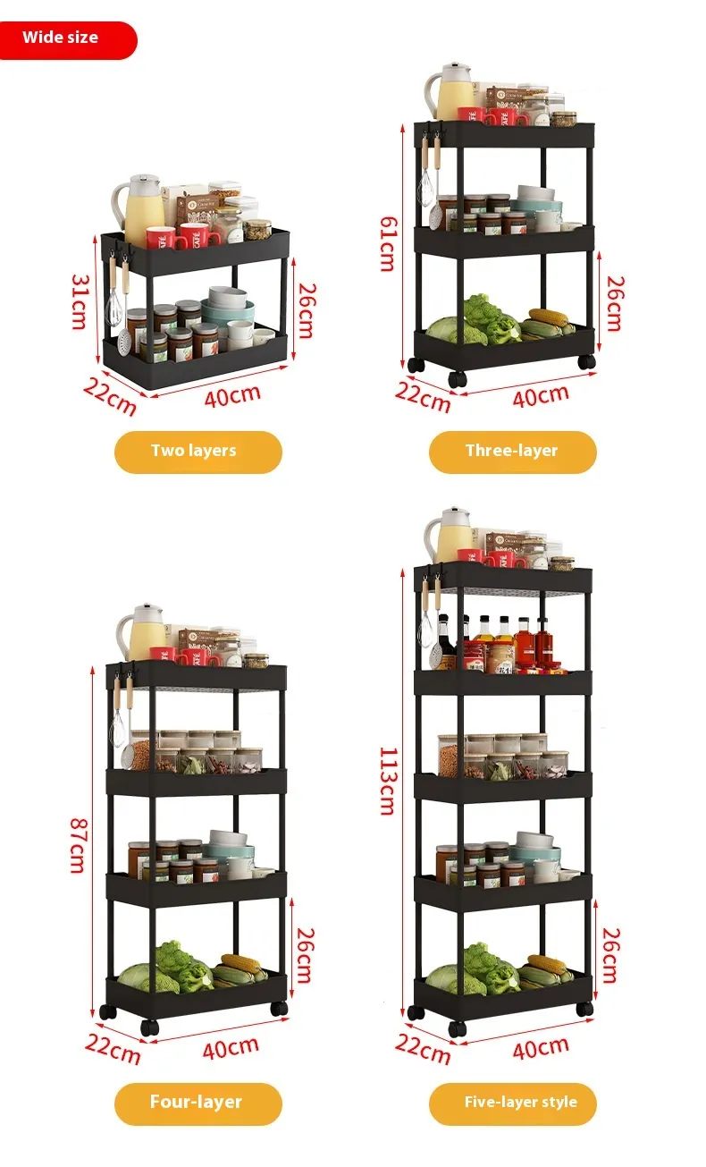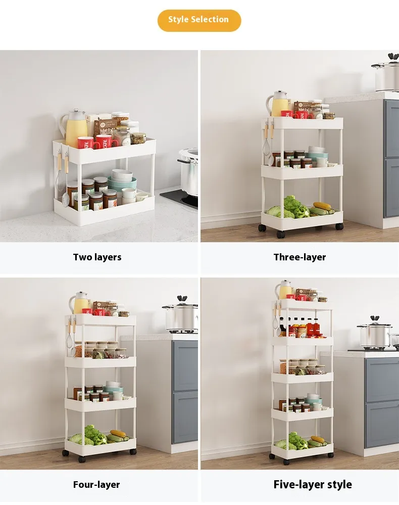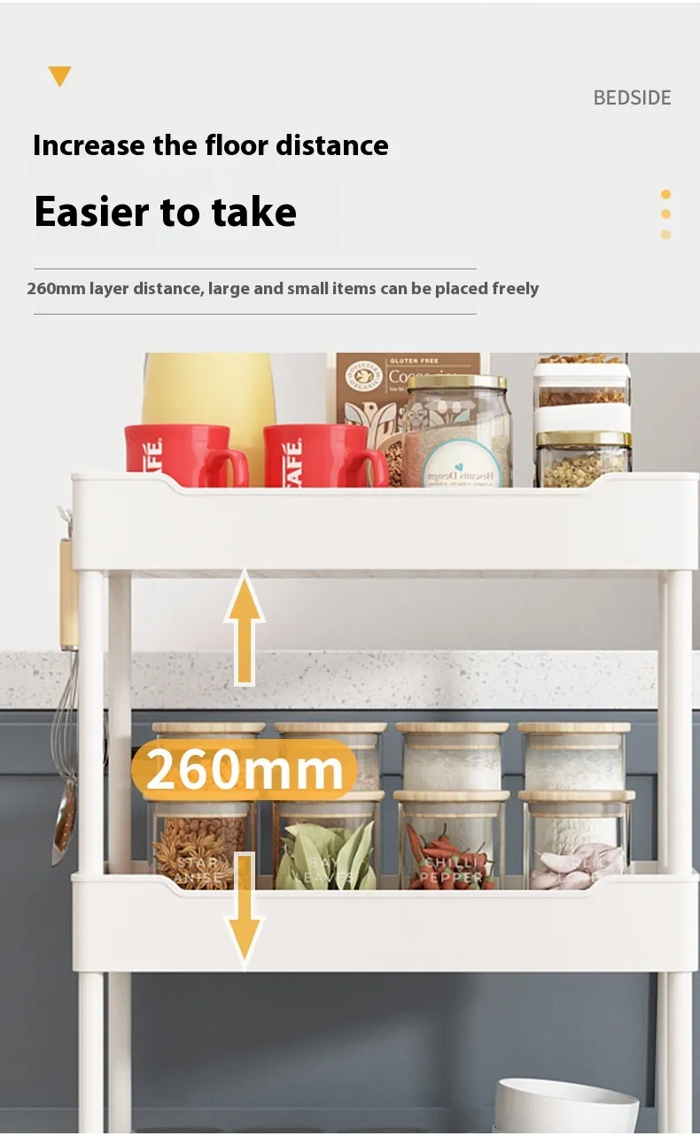 With its convenient design, the Multi Story Kitchen Floor Standing Small Cart Storage Rack provides quick and easy access to your kitchen essentials. Whether you need to grab a spice while cooking or pull out a baking tool, the open shelving system ensures that everything is visible and within reach. No more rummaging through cabinets or drawers—this cart keeps your kitchen tools and ingredients easily accessible.