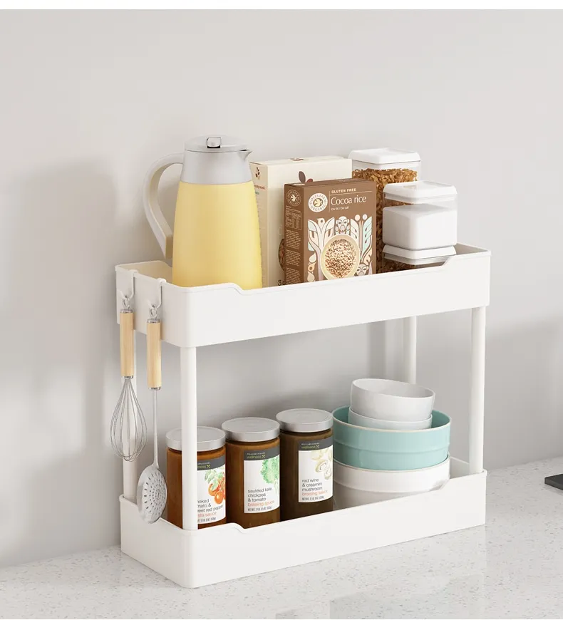 This storage rack comes with multiple levels of shelves, giving you ample space to store a variety of items. Whether it’s spices, canned goods, kitchen tools, or even small appliances, the shelves provide versatile storage options for your kitchen essentials. The multi-tier design ensures that you can separate and categorize your items for easy access, making your kitchen more organized and efficient.