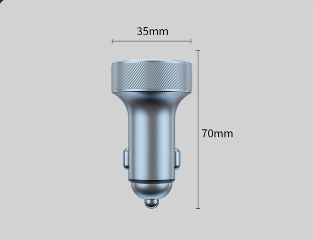 The robust build, crafted from a high-quality aluminum alloy, ensures durability and a premium touch, suitable for any car's aesthetics. Its sleek design is complemented by a user-friendly digital display, encased in a striking iron gray accent. This smart display is engineered to provide you with critical information at a glance, including the precise voltage and charging progress of your devices, to prevent overcharging and extend the lifespan of your electronics.