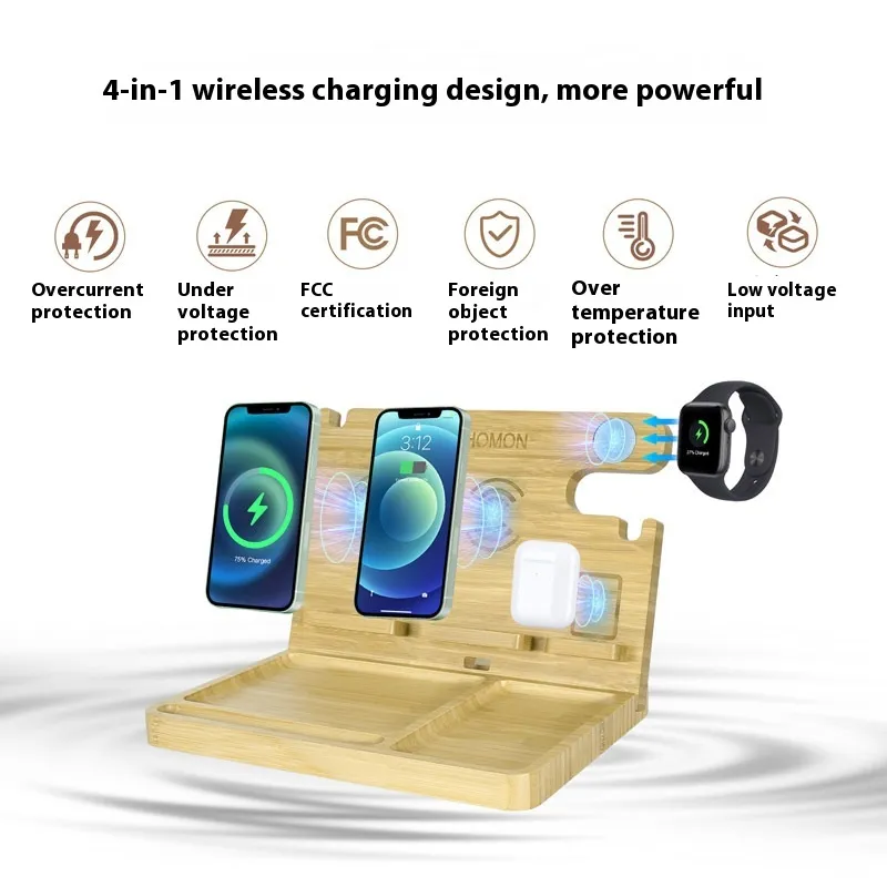 Multifunctional Bamboo Wireless Charger Bracket
