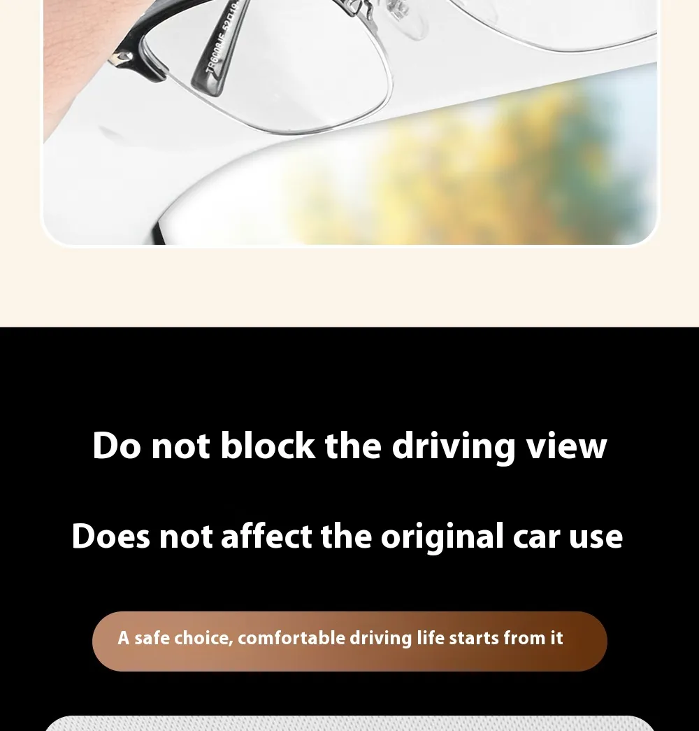Clear View, Always: Keep your sunglasses or cards secure without blocking your vision. Stay focused on the road — distraction-free and stress-free.Â