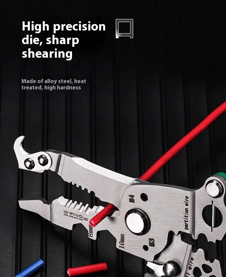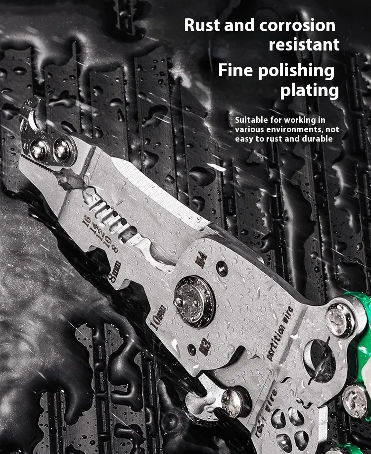 The Multifunctional Folding Wire Stripper is a compact, durable, and versatile tool designed for efficient wire handling across electrical, automotive, and DIY applications. With precise stripping slots, integrated cutting functions, and a foldable design, it delivers professional-level performance in a portable format. Easy to carry and comfortable to use, it supports cleaner connections and smoother workflows. For anyone seeking a reliable all-in-one wiring tool, this wire stripper provides lasting value and everyday practicality.
