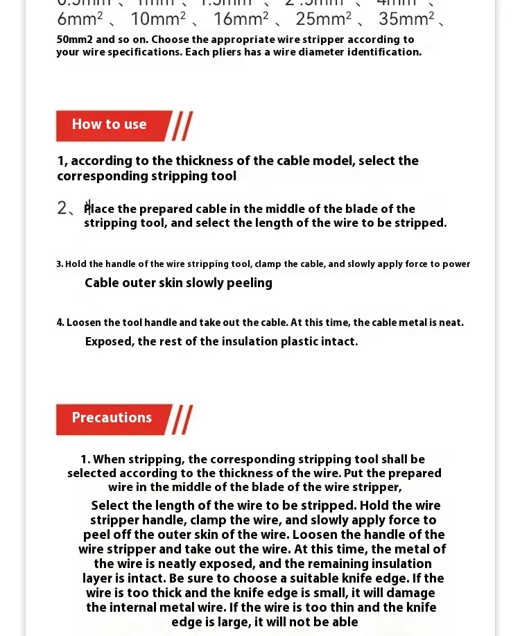 - Sharp and Durable Blades: The high-hardness cutting blades of the wire stripper ensure clean, precise cuts and long-lasting performance, maximizing efficiency without worrying about blade wear.