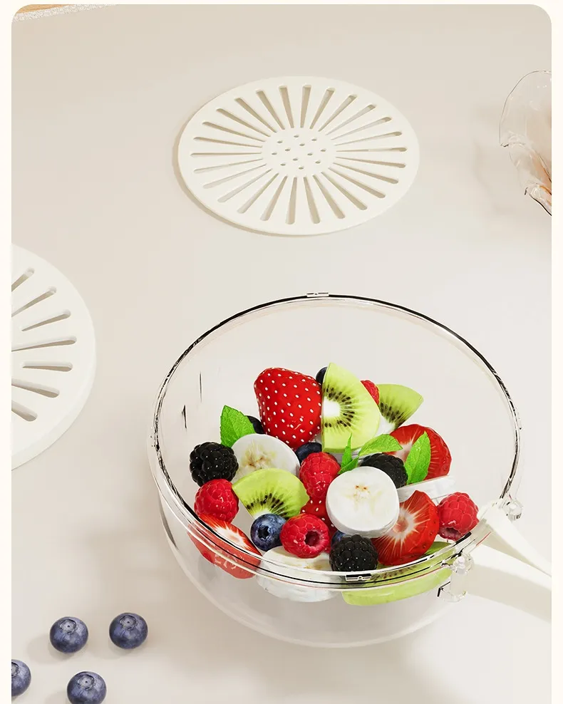 At the centre of this product is its integrated multi-layer design. Most versions feature a removable strainer or basket that fits inside the outer bowl. This smart layout allows users to rinse fruits and vegetables under running water while keeping them contained, reducing splashing and preparation mess. Once washed, simply lift the inner basket to drain water, leaving produce clean and ready for immediate use.