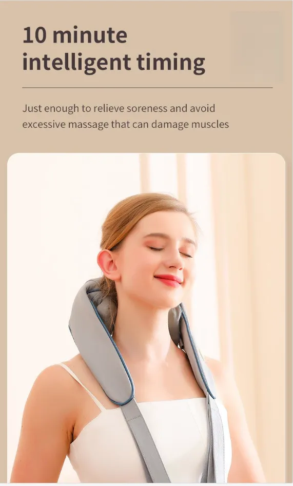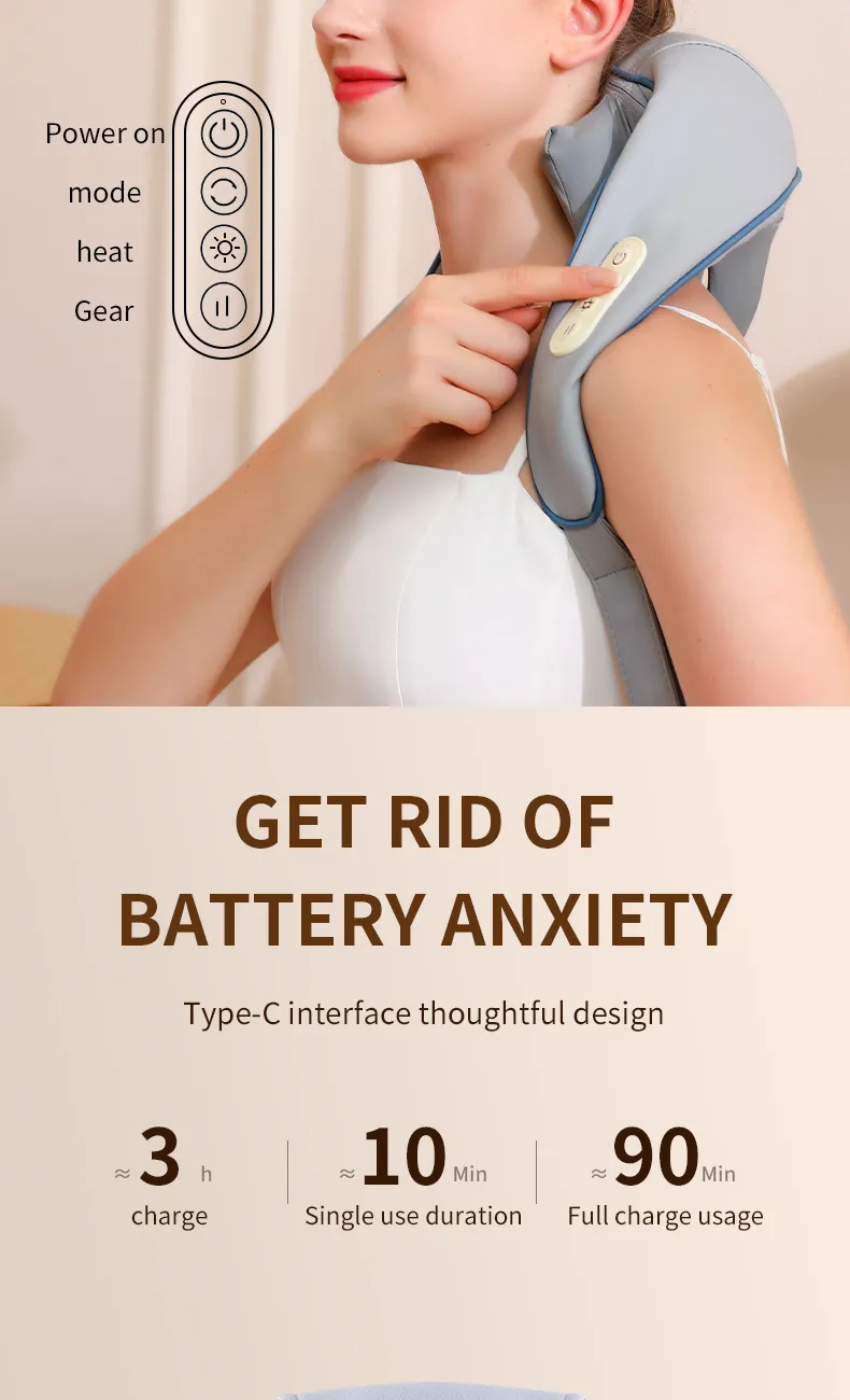 The massage and heat functions work together to target and relieve muscle tension and stiffness in your neck, shoulders, and upper back. Regular use can help reduce discomfort from poor posture, stress, or prolonged sitting.
