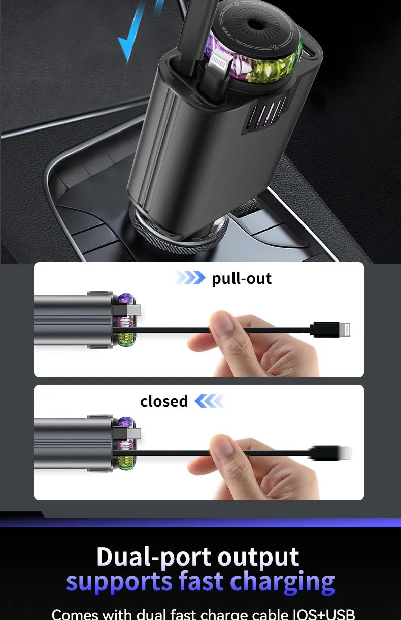 The sleek purple light design adds a modern touch to your car interior. Crafted with high-quality materials, the charger is built to last, resisting daily wear and tear while providing long-term performance.