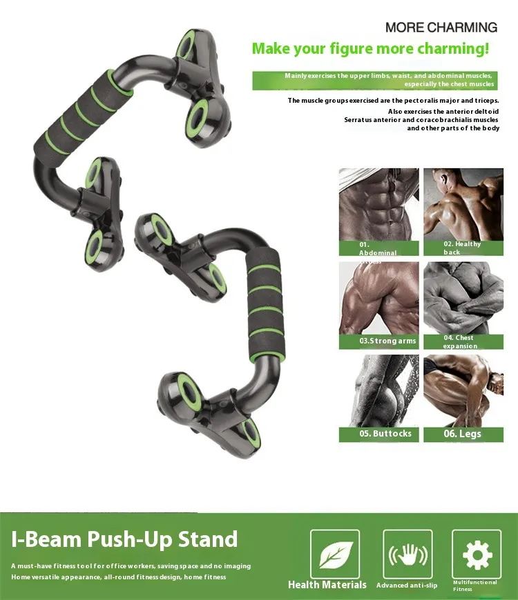 The Multifunctional Push Up Bar I-shaped Detachable Sports Equipment is a game-changing fitness accessory designed for anyone serious about strength training and building muscle at home. This thickened, I-shaped, detachable push-up bar offers unmatched support, durability, and versatility, allowing you to take your home fitness routine to the next level. Whether you're targeting your arms, chest, or core, this piece of equipment is an essential addition to any home gym setup.
