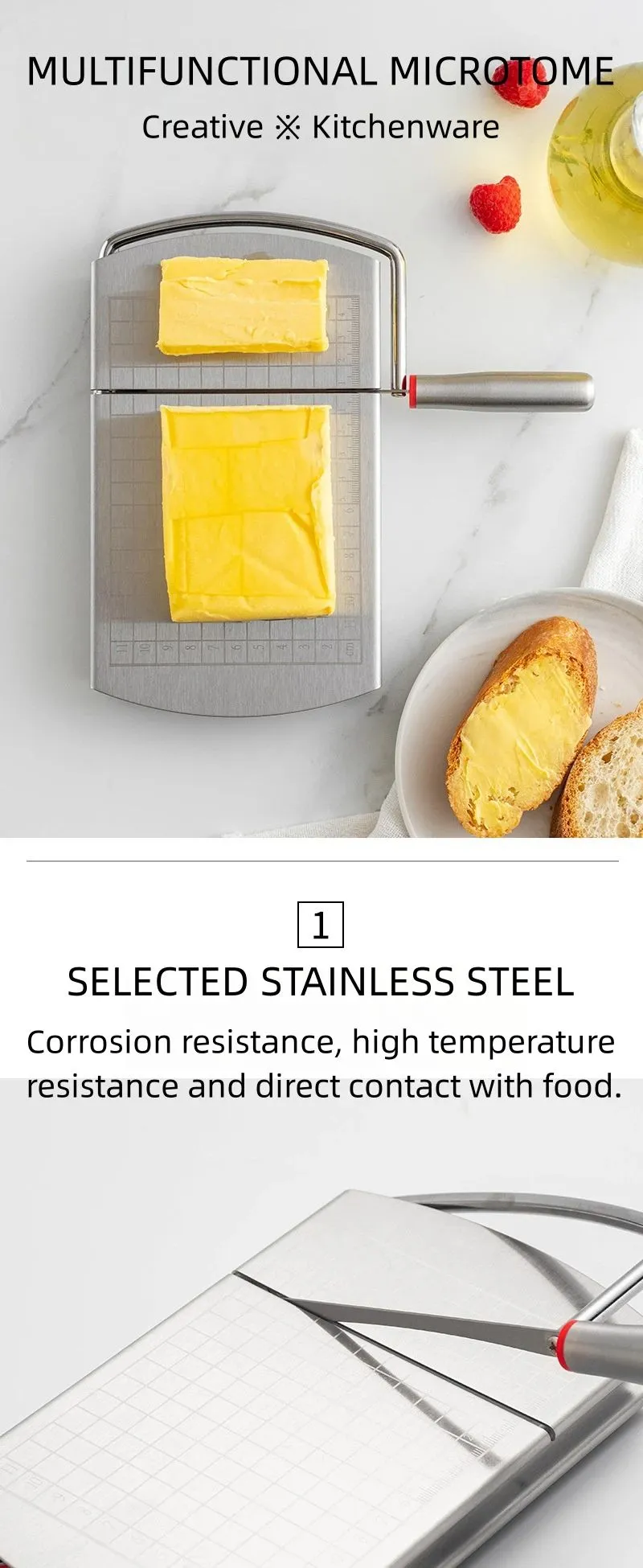 Slice butter, cheese, ham, and sausage effortlessly with the Multifunctional Stainless Steel Slicer, a versatile kitchen gadget designed for precision cutting and easy food prep. Whether you're preparing cheese platters, deli meats, or sandwich fillings, this durable slicer ensures even and consistent slices every time.