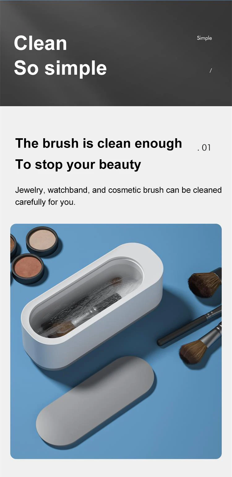 2.The cleaner can be used to clean jewelry, rings, glasses, false teeth, coins, makeup brushes, eggs, watches, necklaces, razors, tableware, dental braces, daily necessities, etc.