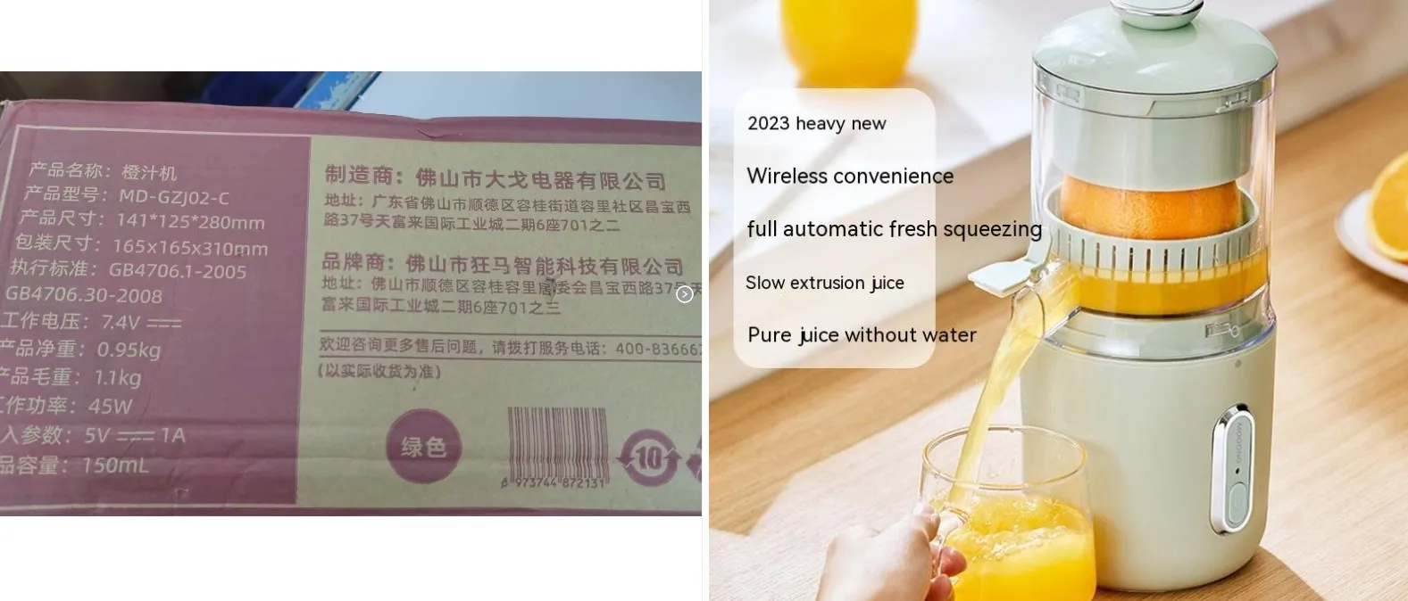1. 【Orange Juice Squeezer】 Simple one-button automatic pressing operation. Automatic sensing peel thickness, maximum juice extraction.