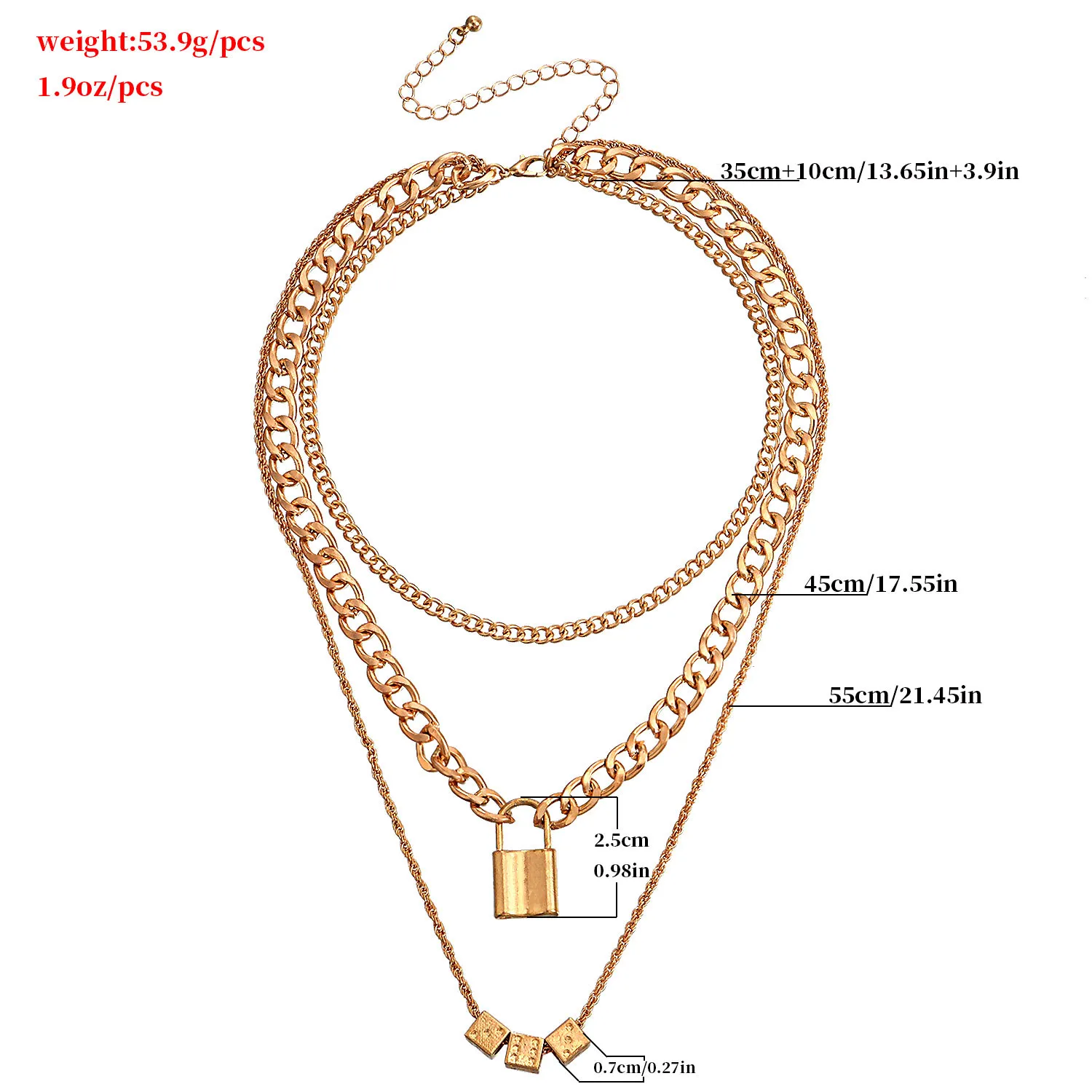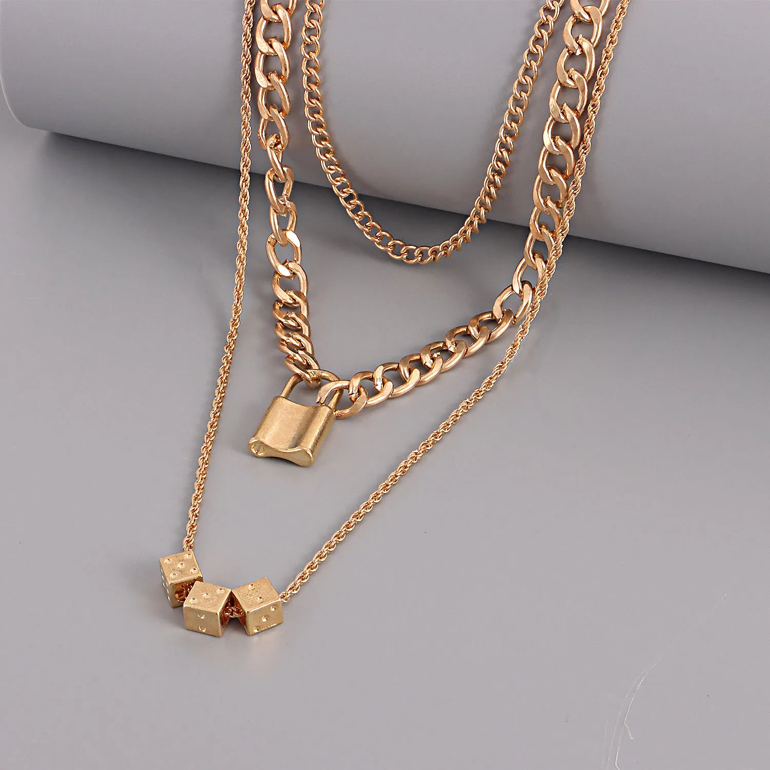 Multilayer Cuban Thick Chain Dice Lock Row Pendant Necklace