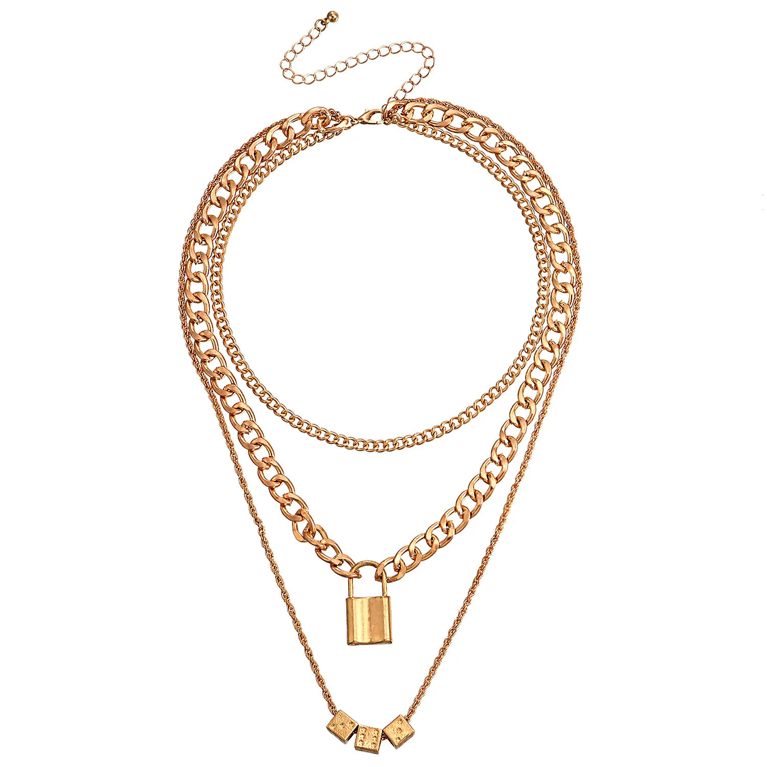 Multilayer Cuban Thick Chain Dice Lock Row Pendant Necklace
