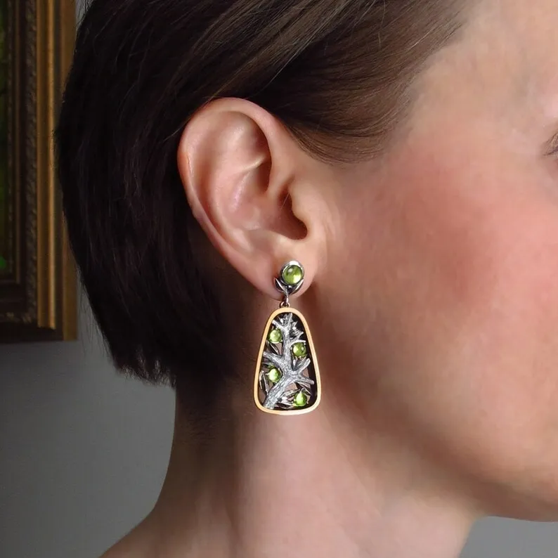 Natural Beautiful Moonstone Big Tree Shape Earrings For Women