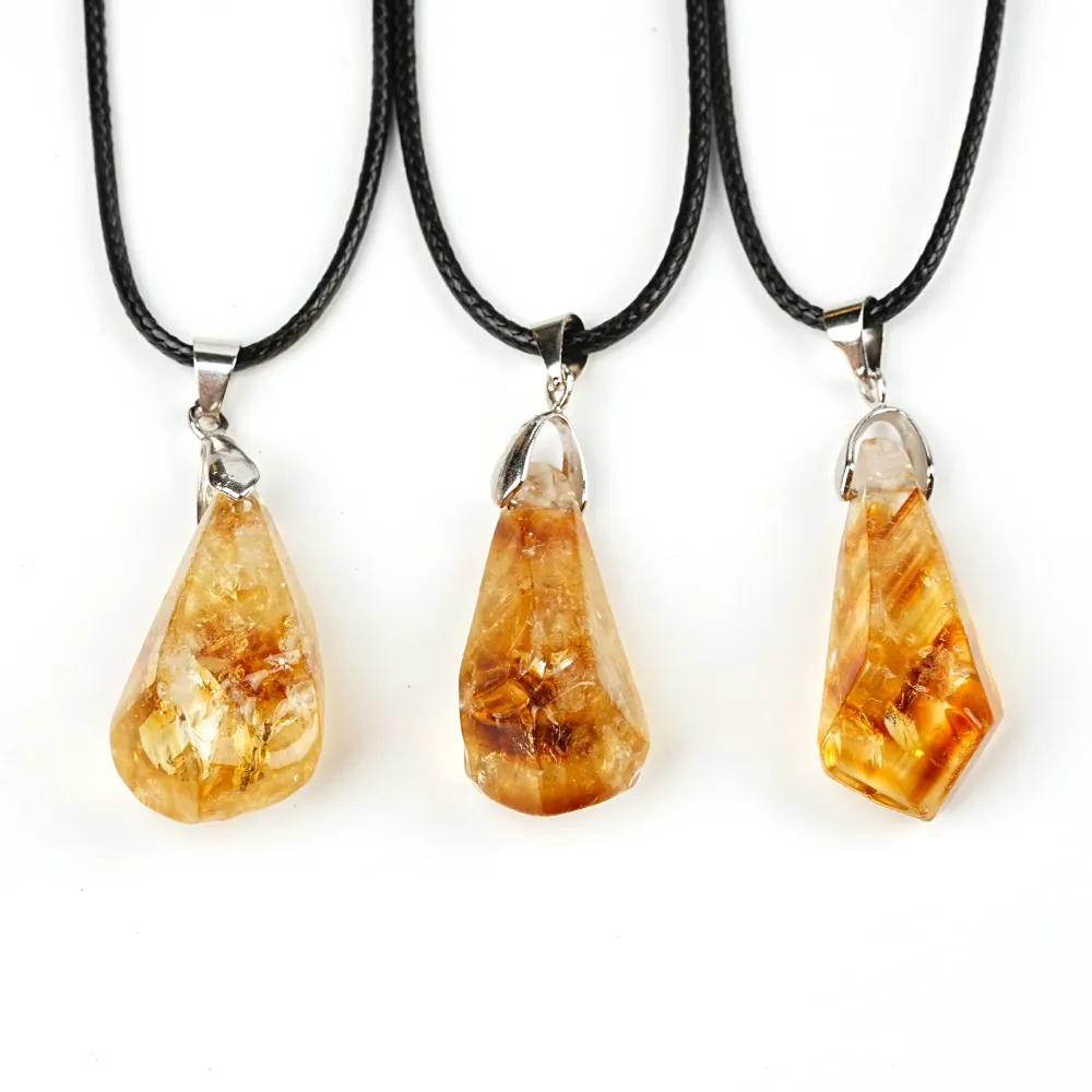 Natural Citrine Cluster Pendant Irregular Raw Stone Necklace