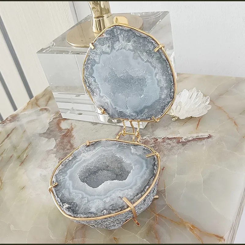 Applications of the Natural Crystal Agate Geode Cornucopia Jewelry Box Ornament