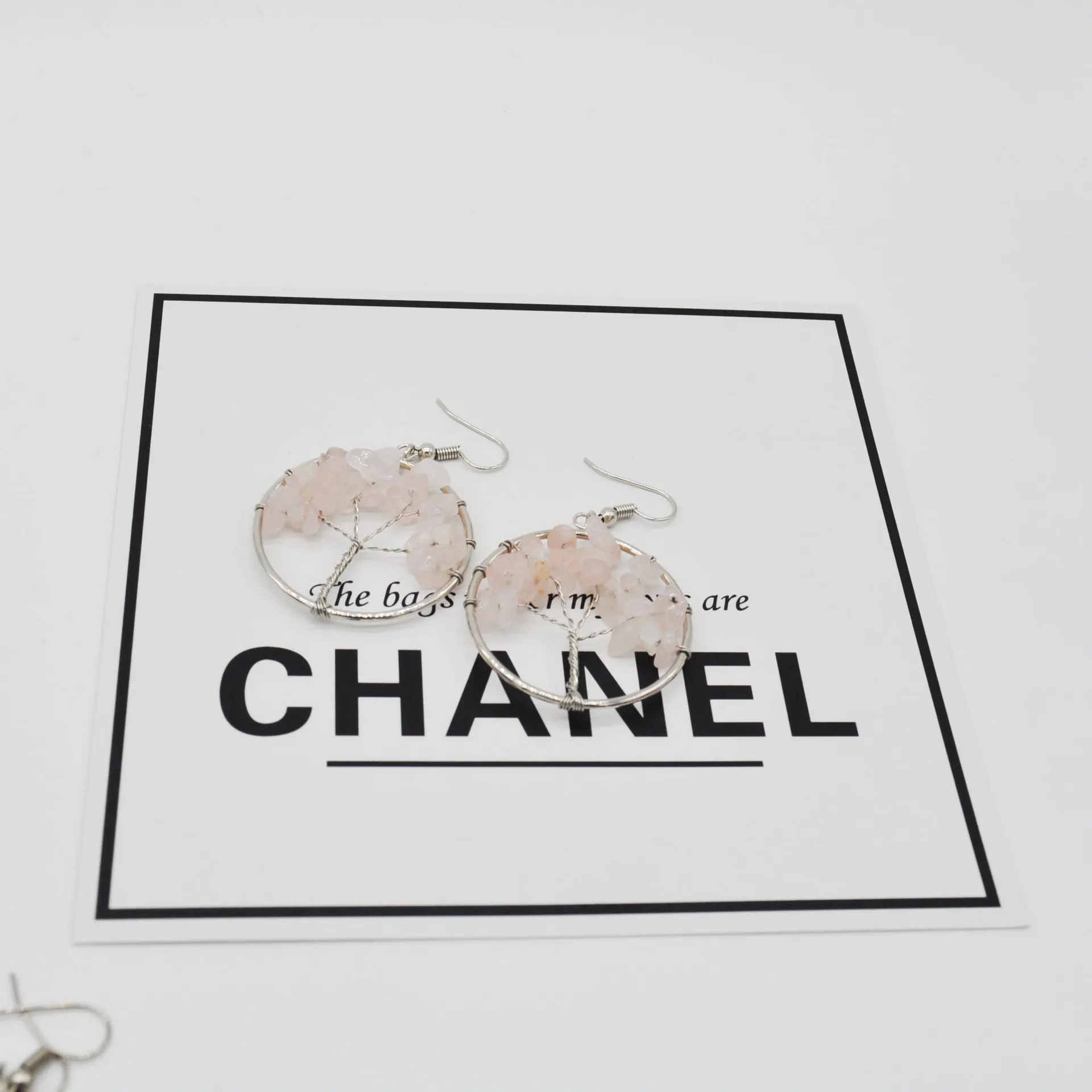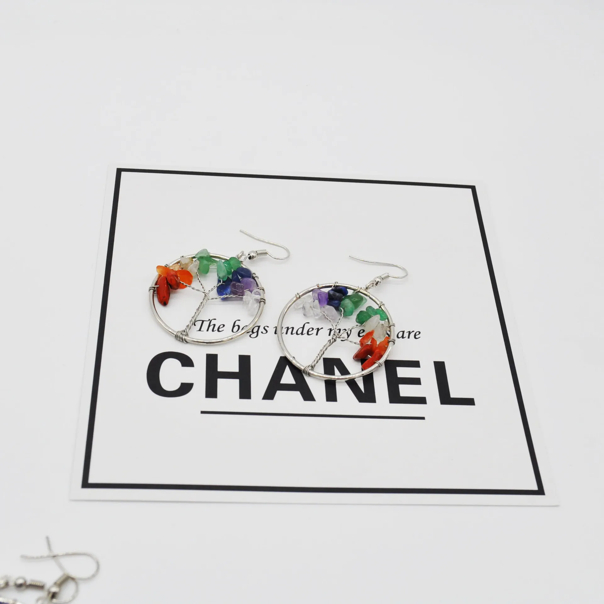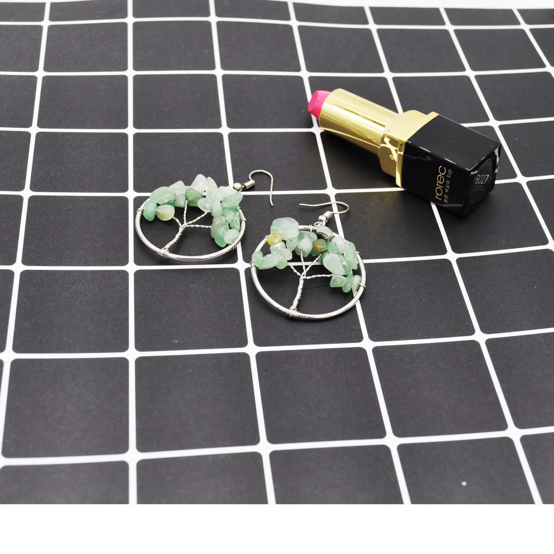 Natural Crystal Crushed Stone Tree Wishing Tree Earrings Crystal Tree Earrings Jewelry