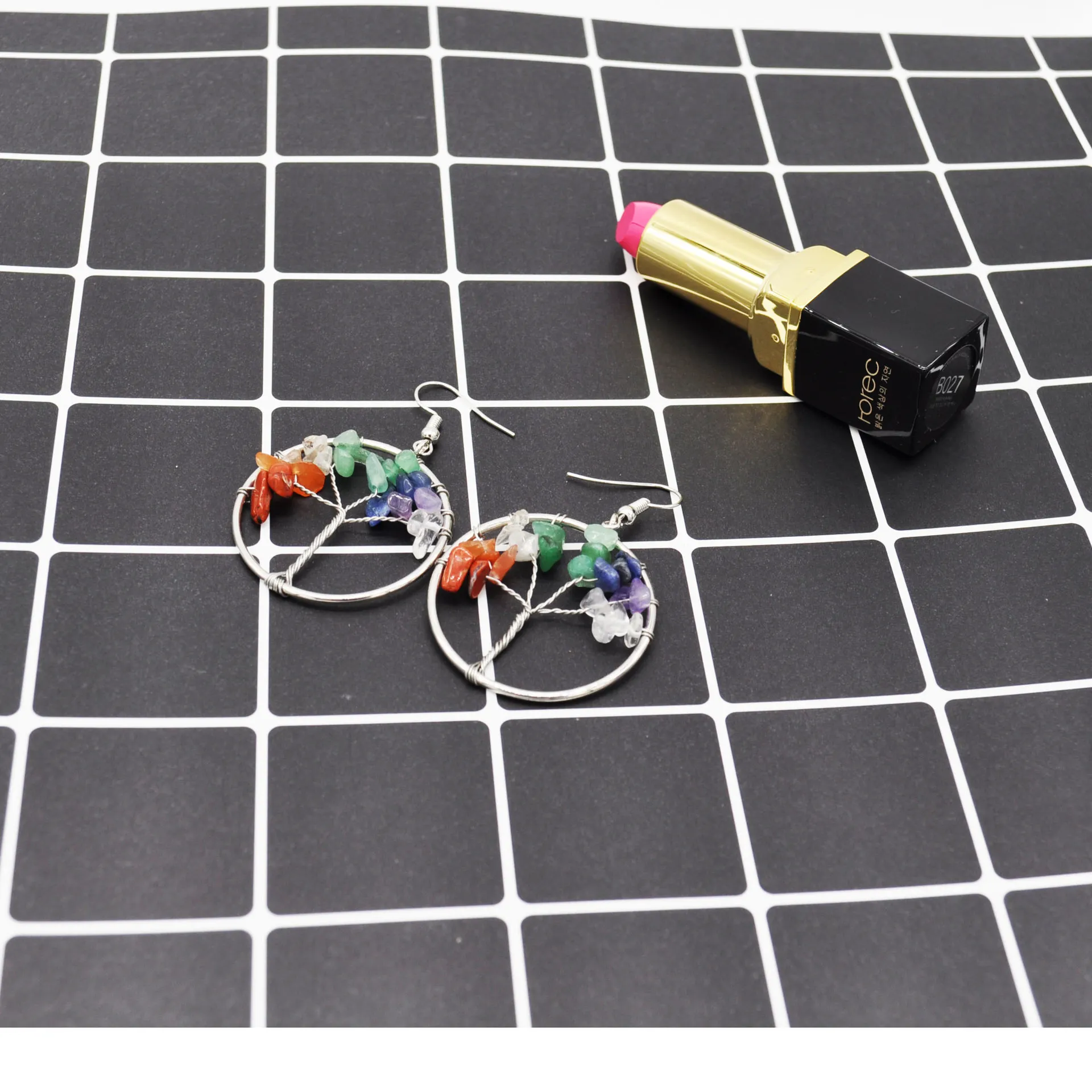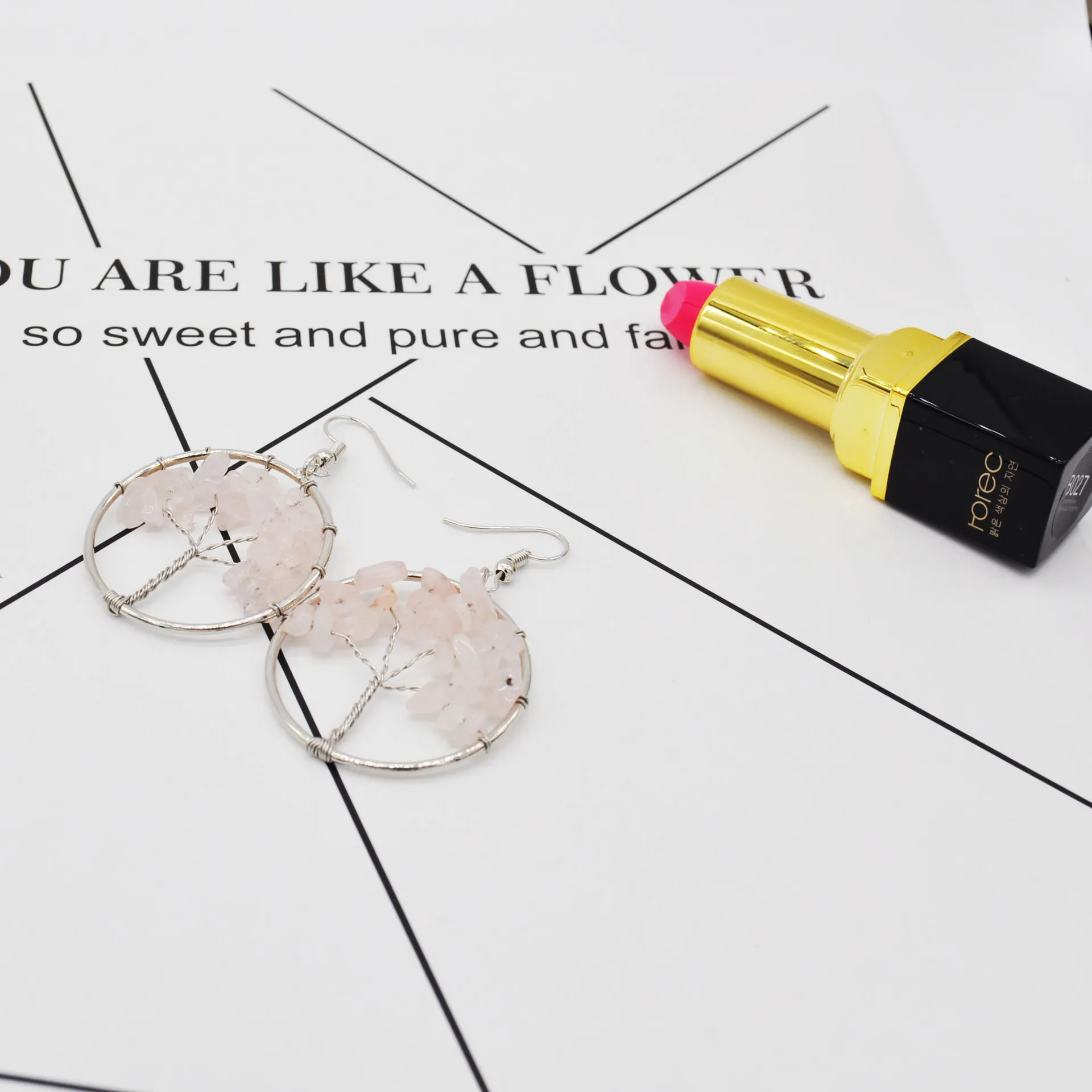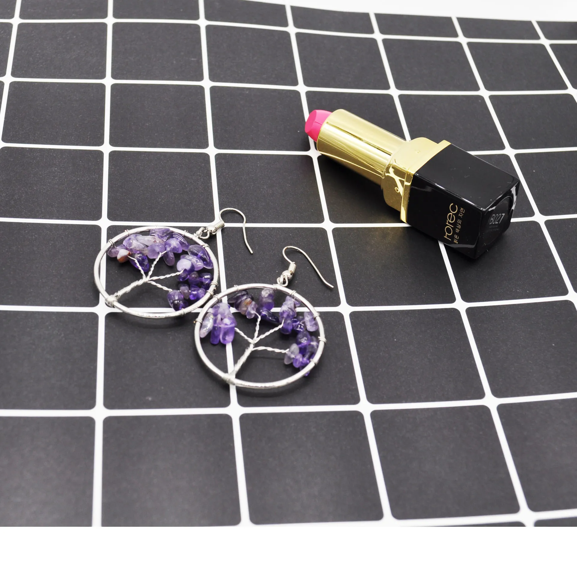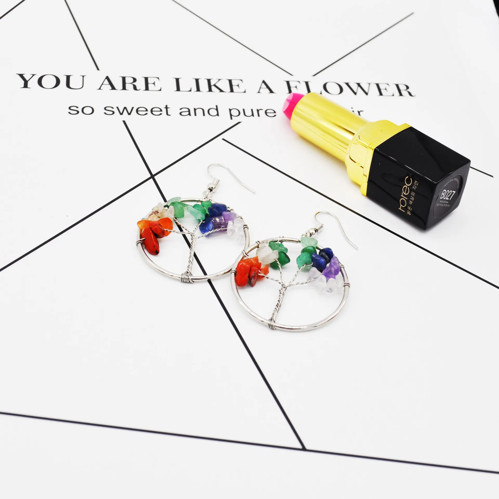 Natural Crystal Crushed Stone Tree Wishing Tree Earrings Crystal Tree Earrings Jewelry