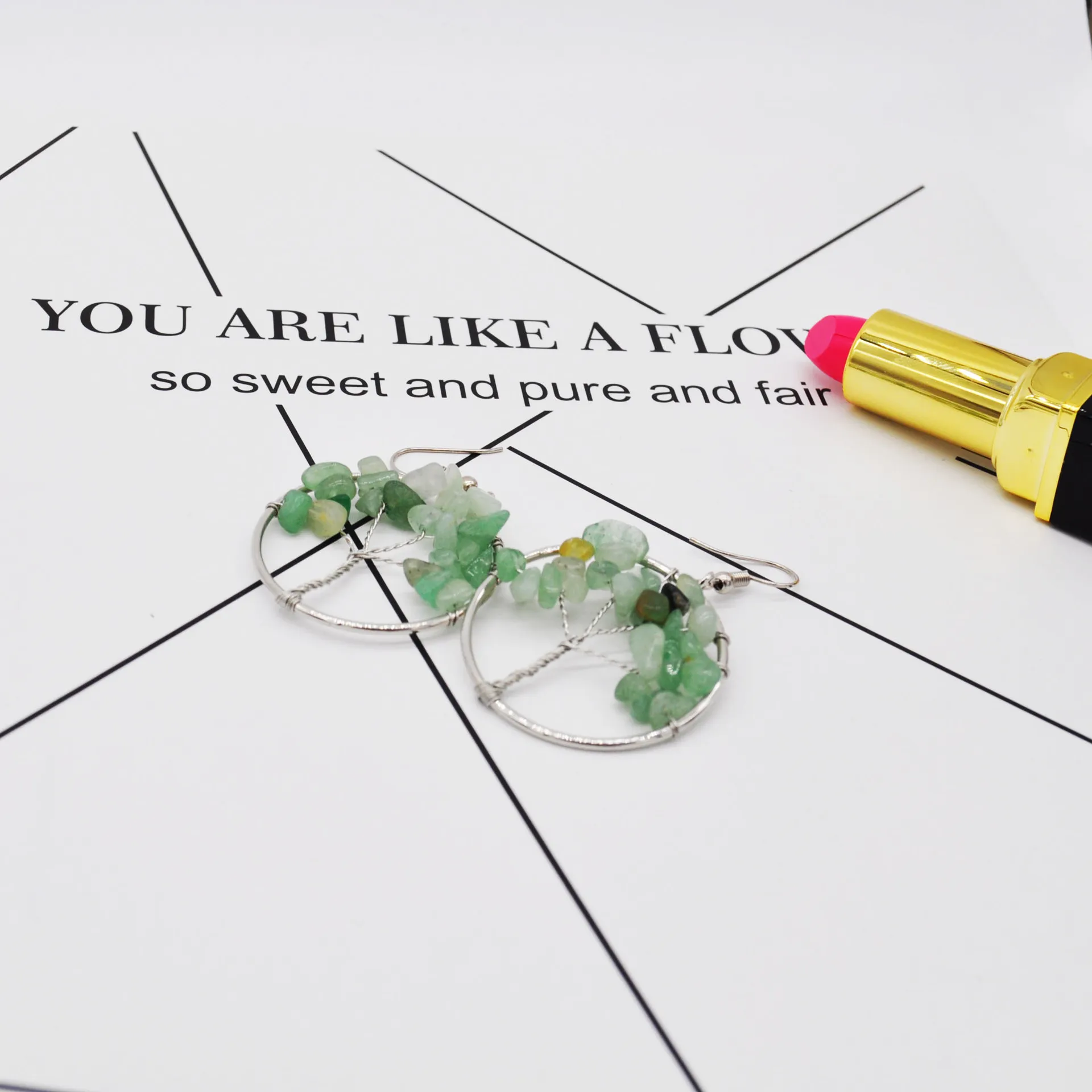 Natural Crystal Crushed Stone Tree Wishing Tree Earrings Crystal Tree Earrings Jewelry
