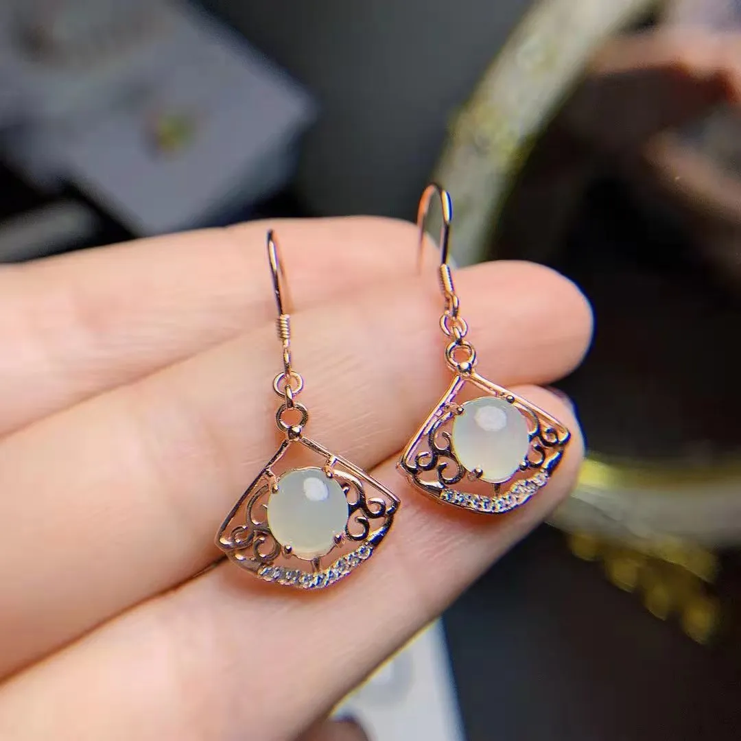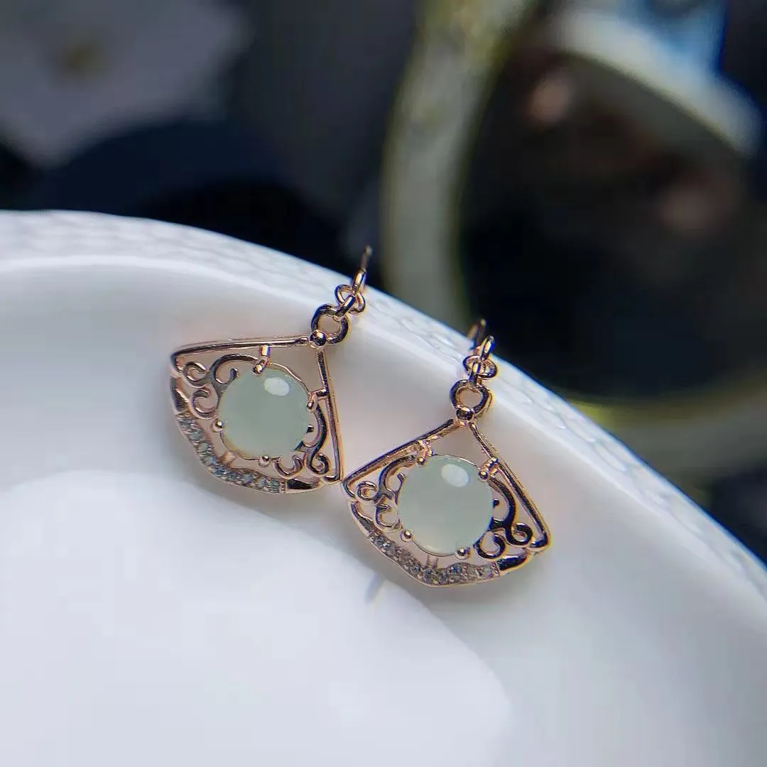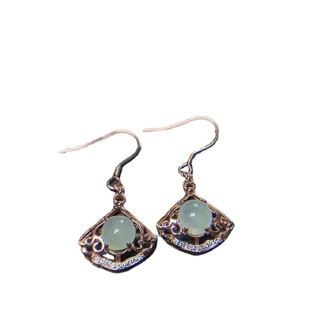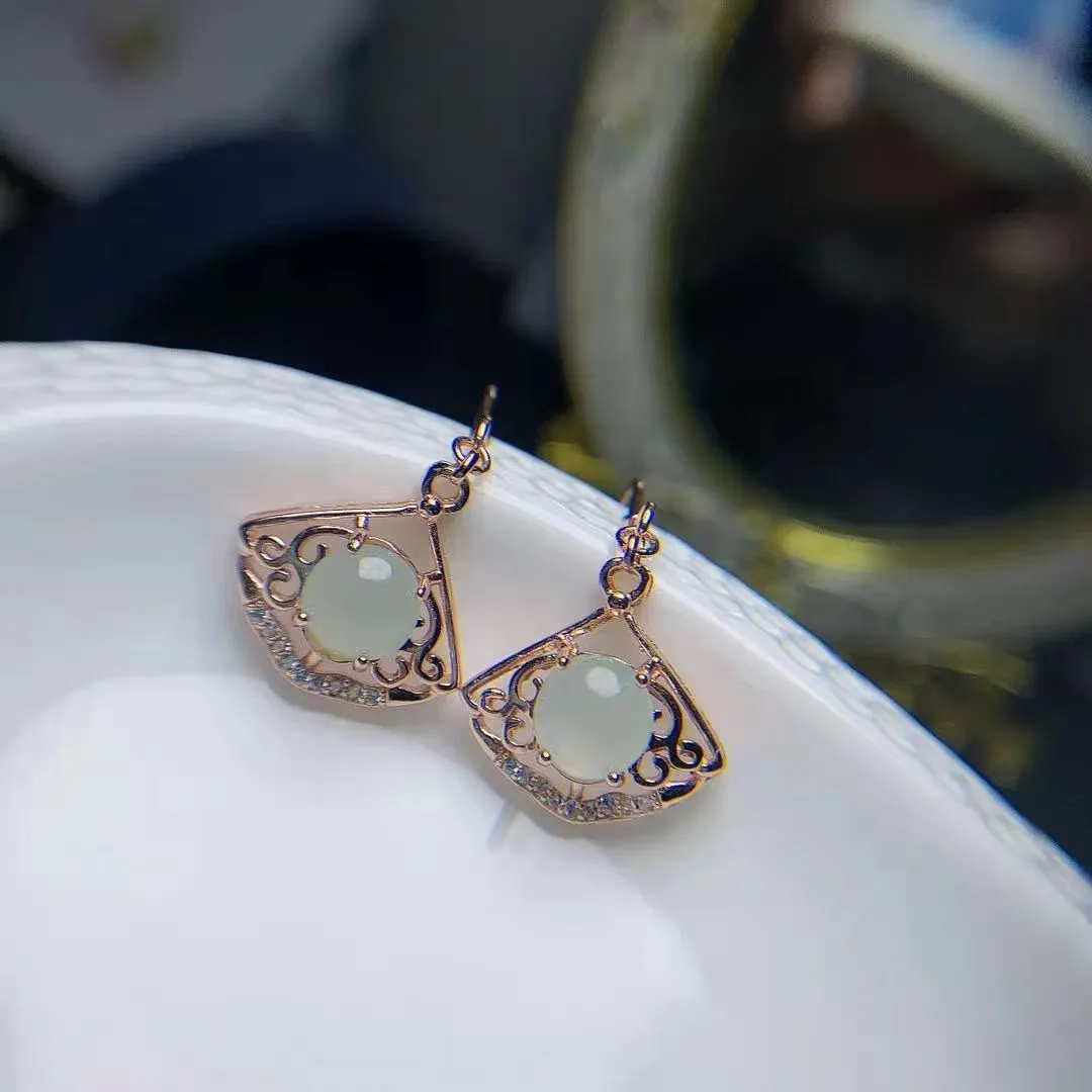 Natural Emerald Eardrops Rose Fan Temperament Ear Studs
