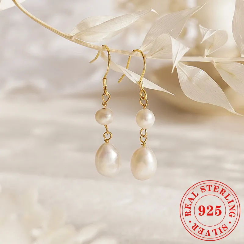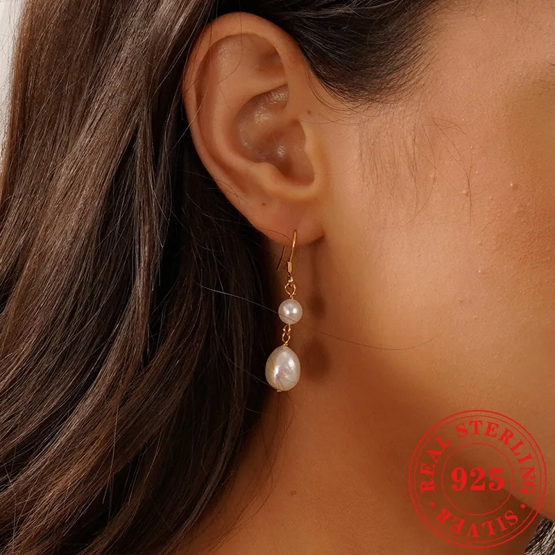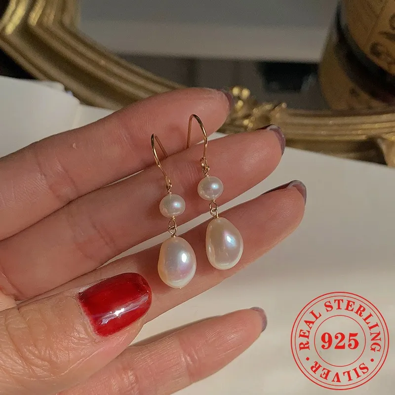 Natural Freshwater Pearl 925 Silver Needle Female Vintage Handmade Temperament Baroque Eardrop Earring