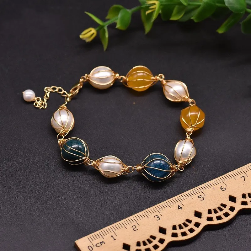Key Features of the Natural Freshwater Pearl Blue Crystal Stone Yellow Jade Bracelet
