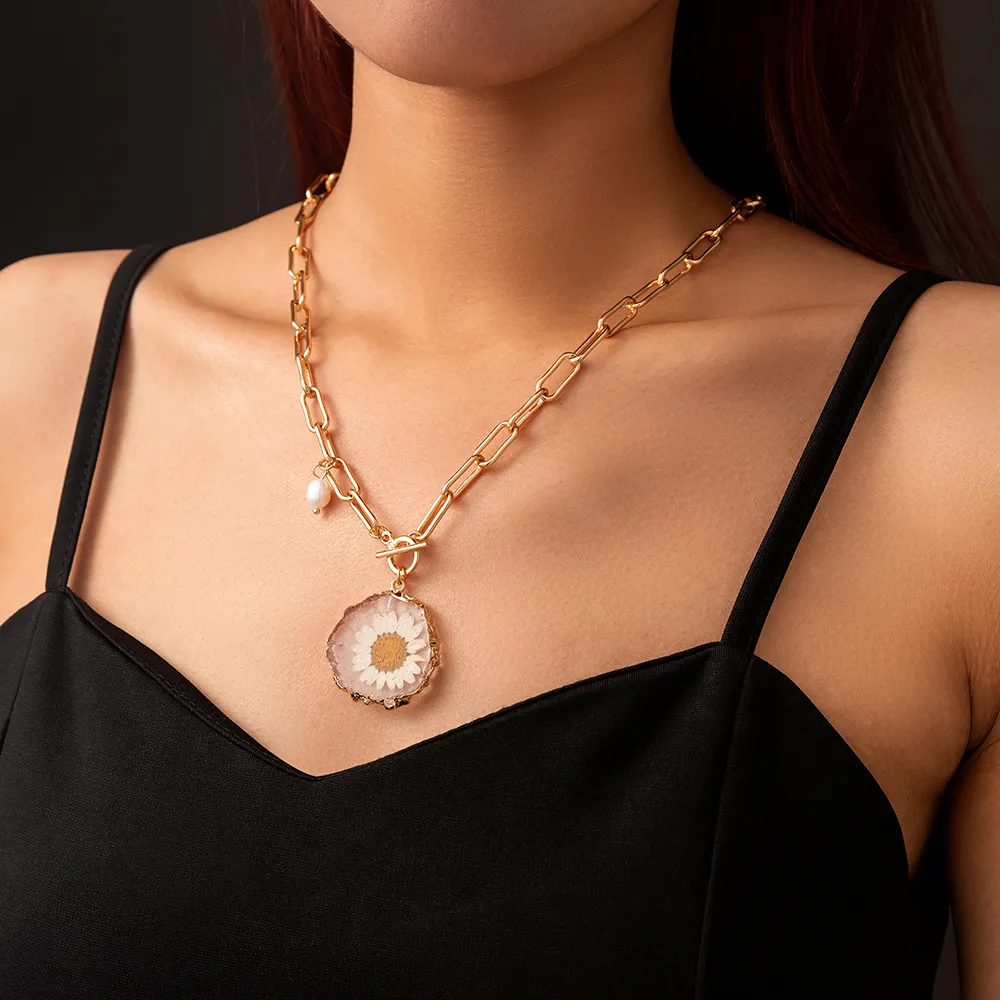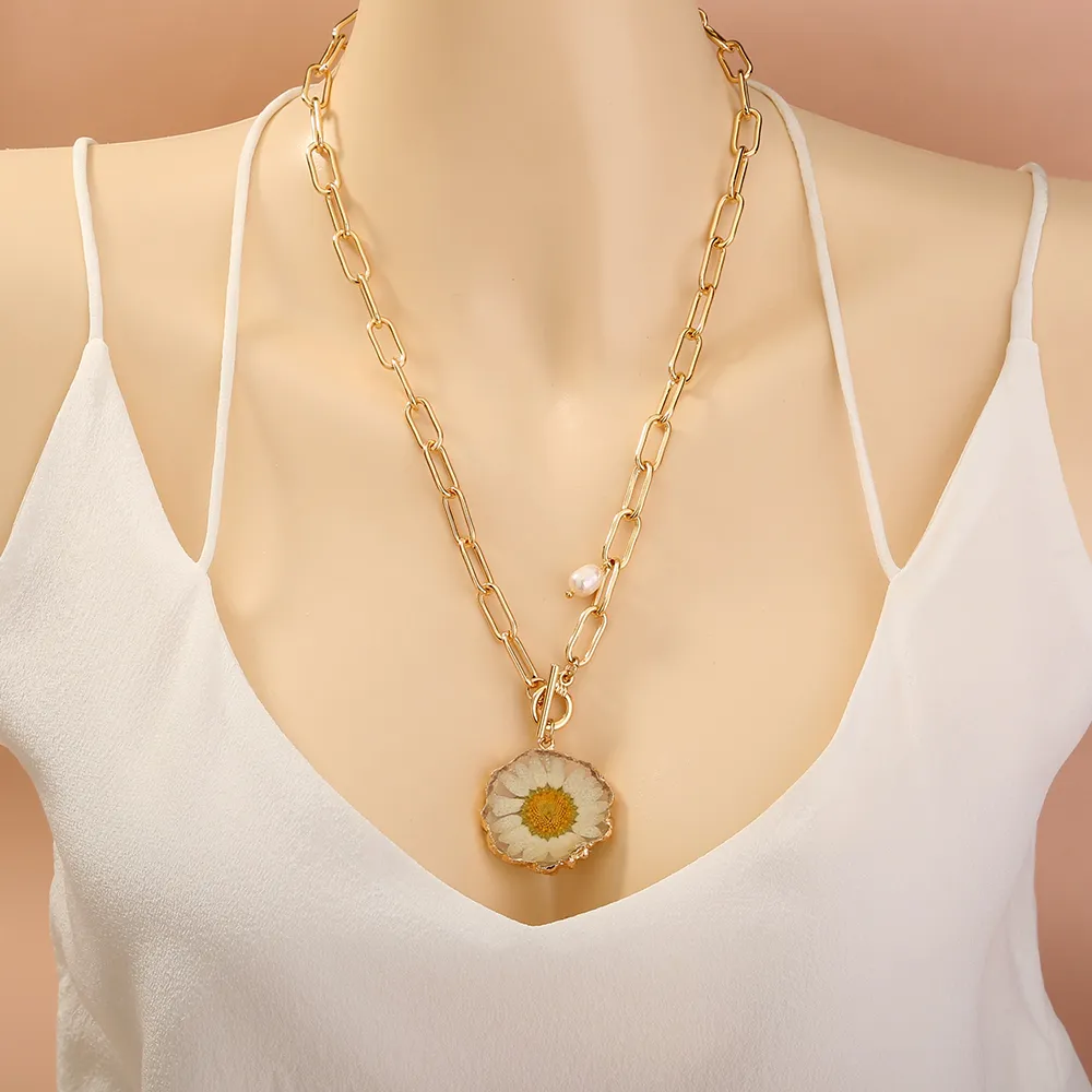 Natural Freshwater Pearl Chrysanthemum Pendant Necklace