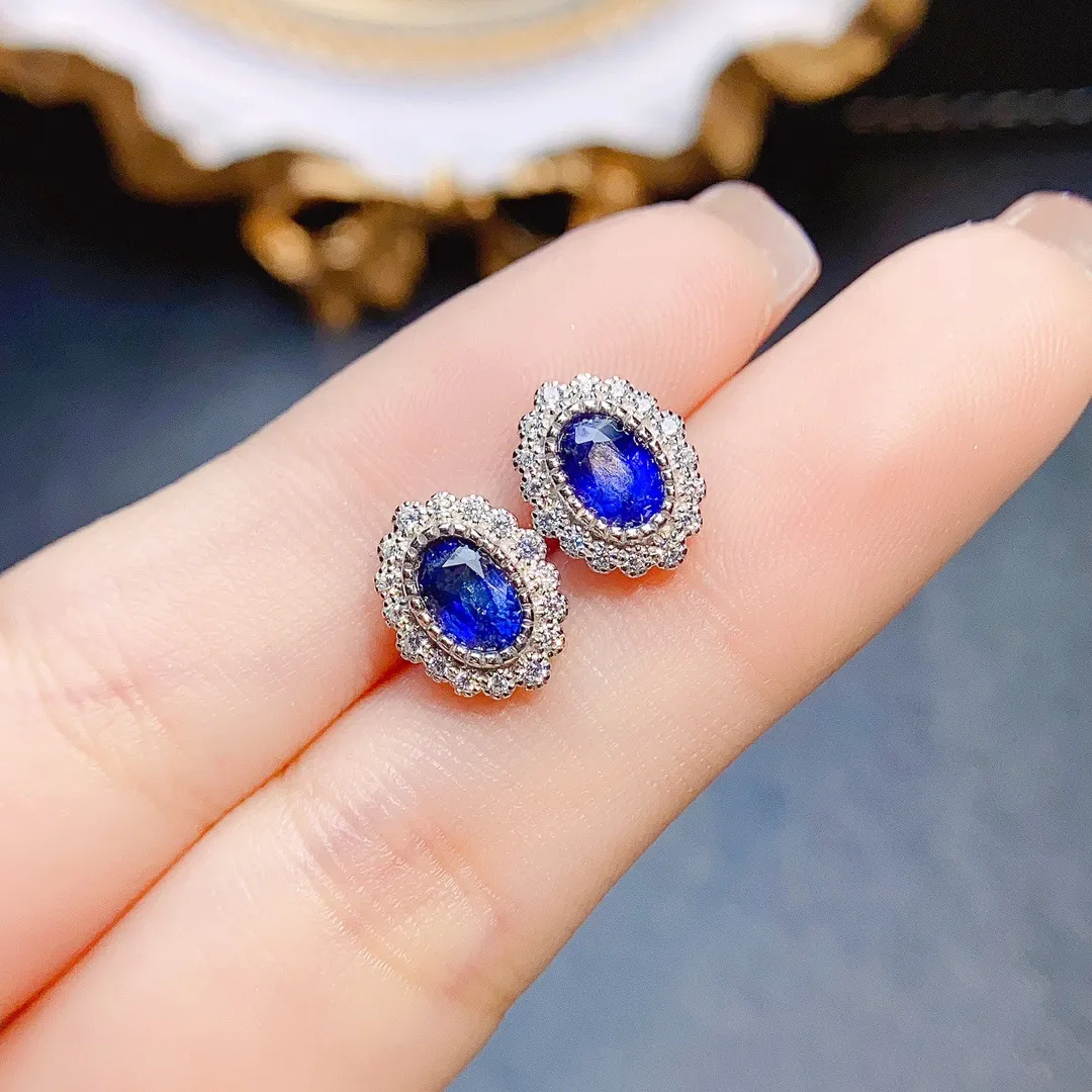 Why Choose the Natural Sapphire Stud Earrings S925 Silver Inlaid Main Stone?